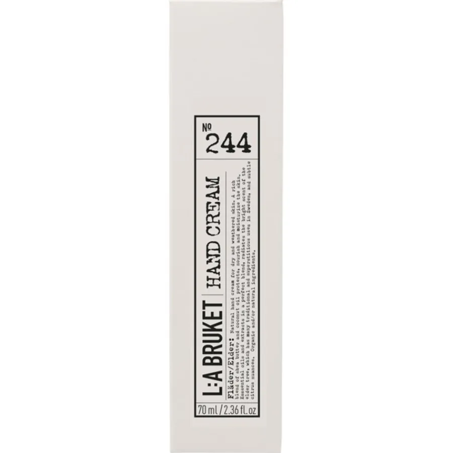 Unter den Hand- und Fußcremes von L:A BRUKET zeichnet dieses Produkt seine Mehrfachwirkung für Körper und Seele aus. So enthält 244 Hand Cream Elder zahlreiche Pflanzenextrakte zur Regeneration. Zusätzlich ist die Hautpflege mit angstlindernden ätherischen Ölen angereichert.
