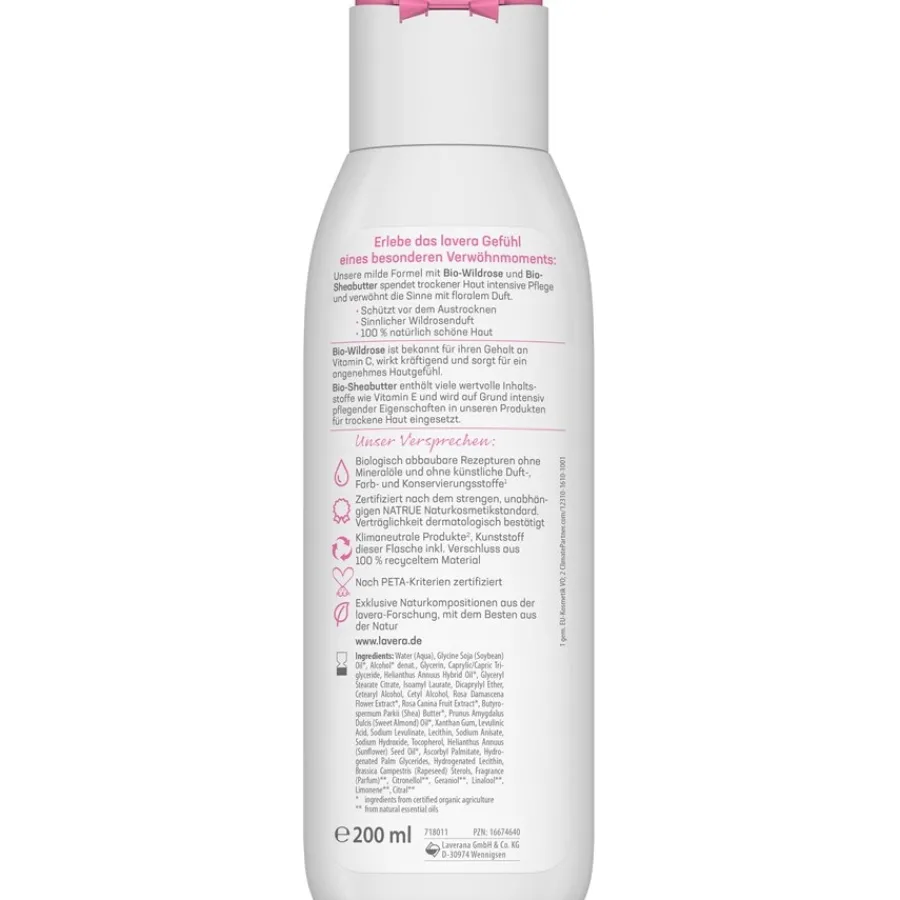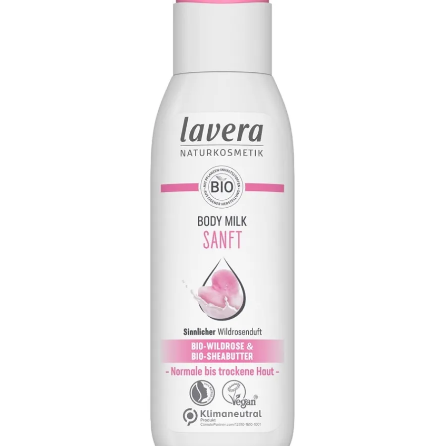 Die Sanfte Body Milk Bio-Wildrose & Bio-Sheabutter aus der Kategorie Body Lotion und Milk von Lavera pflegt die Haut geschmeidig weich und versorgt sie intensiv mit Feuchtigkeit. Sie begeistert mit ihrem köstlichen Duft nach zarten Wildrosen. Ihre leichte Textur zieht schnell ein und eignet sich perfekt für normale bis trockene Haut. Dabei ist ihre Verträglichkeit dermatologisch bestätigt. Sie ist vegan und klimaneutral, ihre Rezeptur ist biologisch abbaubar. Tragen Sie die Body Milk nach dem Duschen auf die Haut auf und genießen Sie ein seidiges, samtweiches Hautgefühl!