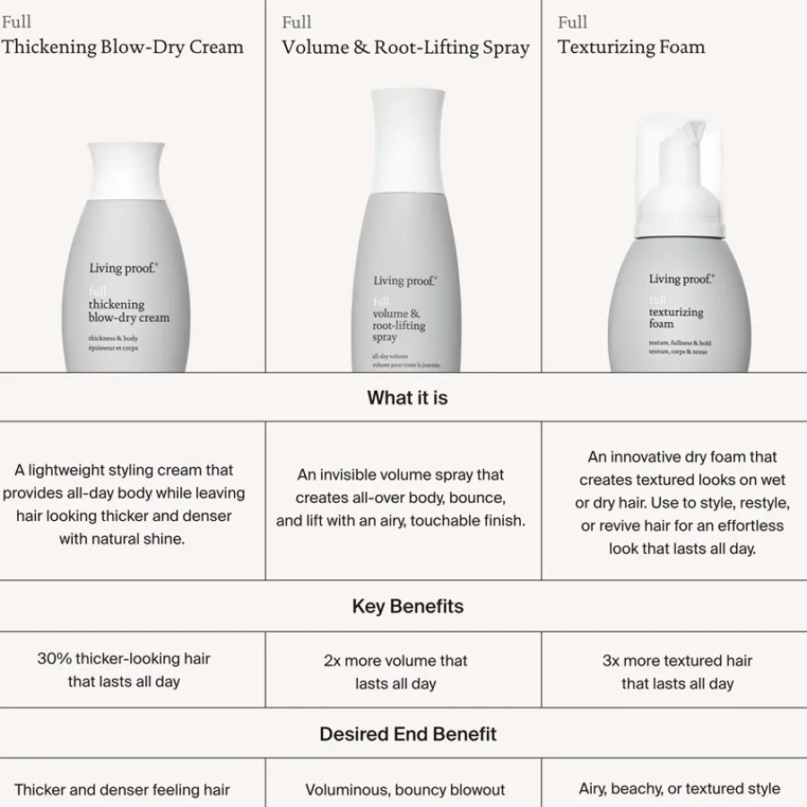 Für die Anwendung des Sprays von Living Proof sollten die sauberen und noch feuchten Haare mit wenigen Sprühstößen eingesprüht werden. Für die optimale Wirkung lohnt es, eine Haarcreme oder ein Mousse der Edition Full zur Abrundung einzuarbeiten. Damit ein natürlicher Schwung in den Look kommt, ist das anschließende Föhnen mit Rundbürste ratsam.Das Full Root Lifting Spray von Living Proof wird in einem robusten Spender angeboten, dessen Düse sich unter heißem Wasser einfach auswaschen lässt. Zusammen mit anderen Artikeln der Edition Full in unserem Sortiment kann jeder zu einem aufregenden Haarstyling mit zusätzlicher Stärkung der Haarwurzeln gelangen.