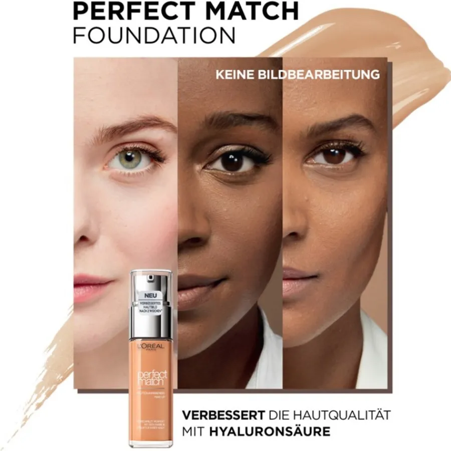Das Perfect Match Make-up von L’Oréal Paris begeistert mit einem cremigen Finish und einer angenehm flüssigen Konsistenz. Sie können das Make-up entweder mit den Fingern oder mit einem Schwamm auf dem Gesicht verteilen. Blenden Sie es an den Rändern sanft aus. Außerdem können Sie das Make-up gerne mit einem Highlighter und einem Contouring-Powder kombinieren und so einen perfekten Teint kreieren.
