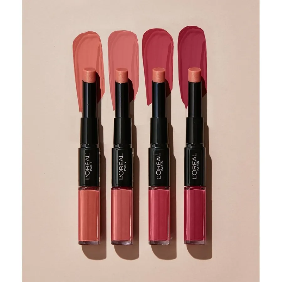 Das Besondere an dem Infallible 2-Step Lipstick von L’Oréal Paris ist nicht nur sein langer Halt, sondern vor allem sein Pflege-Effekt. Diesen verdankt der Lippenstift dem beigefügten Lip-Balm. Tragen Sie zunächst die Lippenfarbe mit dem Schwämmchen-Applikator auf. Lassen Sie den Lippenstift gut trocknen und verteilen Sie dann den Balsam auf den Lippen. Dieser versorgt Ihre Haut mit wichtiger Feuchtigkeit und verleiht Ihrem Kussmund einen tollen Glanz. Immer wenn Sie das Gefühl haben, dass Ihre Lippen trocken werden, können Sie erneut etwas von dem Lippenbalsam auftragen.