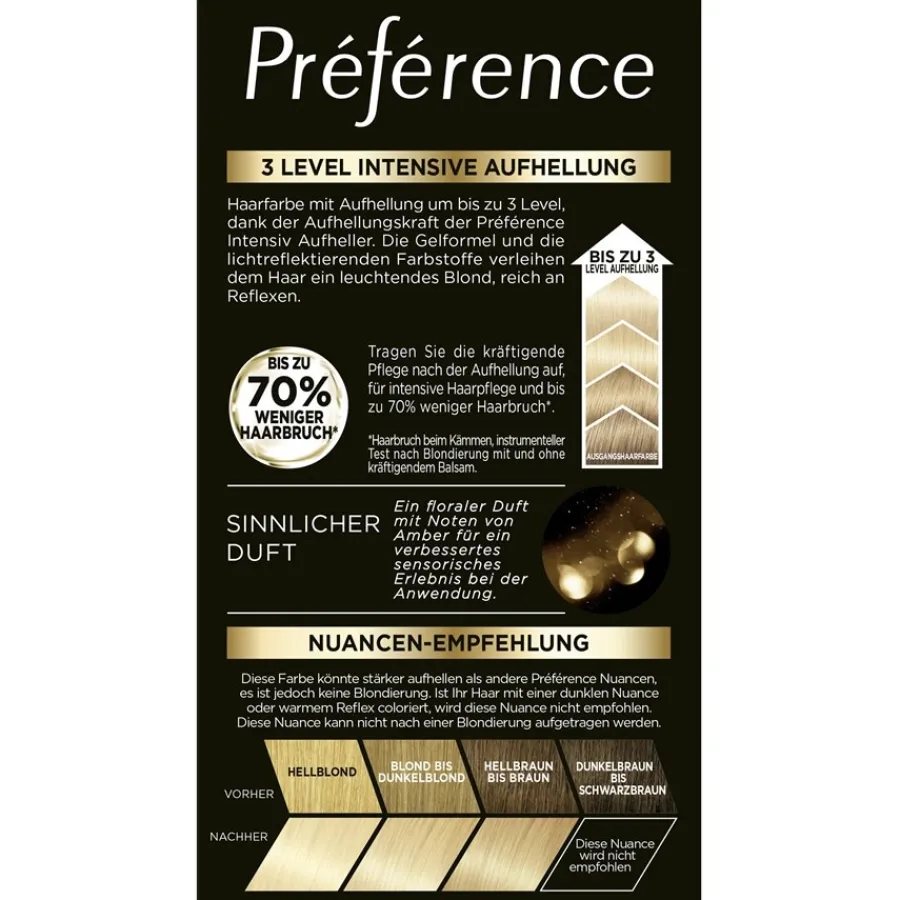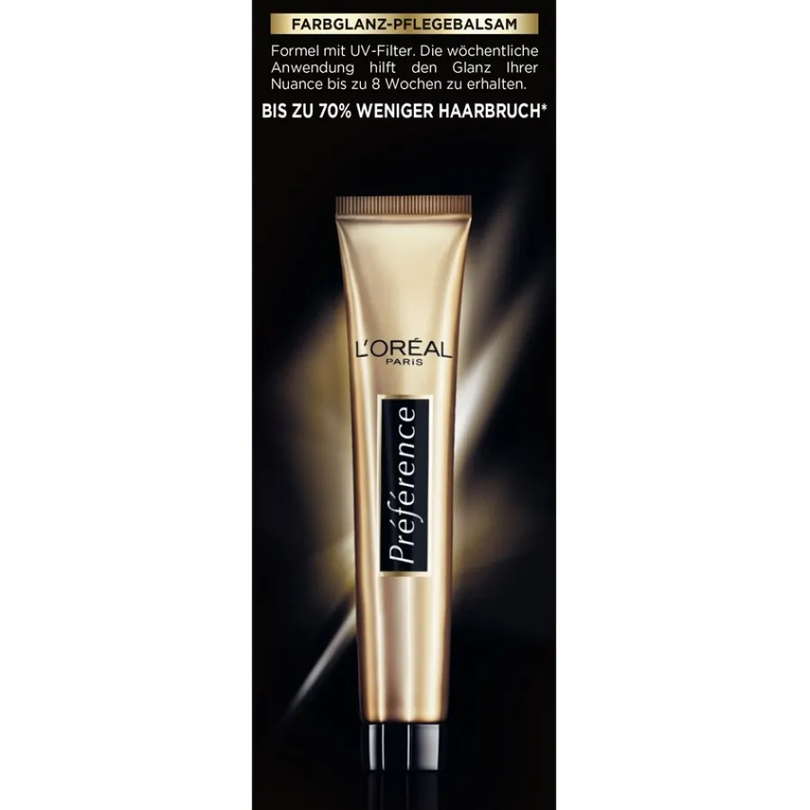 Dank der speziellen Technologie der Gelformel von Préférence L’Oréal Paris werden die Haare beim Färben gestärkt. Sie werden robuster und brechen deutlich seltener. Von der Wurzel bis in die Spitzen entfalten die Haare ein Maximum an geschmeidiger Spannkraft und Volumen. Die sanfte und angenehme Textur pflegt Haare und Kopfhaut, erfrischt den Look und sorgt für ein jugendlicheres Flair. Das natürliche Finish lässt die Haare in frischem Glanz erstrahlen.