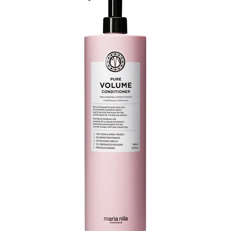 Der Pure Volume Conditioner von Maria Nila ist eine feuchtigkeitsspendende Pflege, die für feines und schlaffes Haar entwickelt wurde und auch für coloriertes Haar verwendet werden kann. Während das enthaltene Vitamin B5 das Haar intensiv pflegt und ihm neues Volumen schenkt, schützt der Farbschutz-Komplex vor UV-Strahlen und ermöglicht so eine länger anhaltende Farbbrillanz. Sorgfältig ausgewählte Inhaltsstoffe verleihen dem Haar darüber hinaus eine Extraportion Kraft und Vitalität sowie einen herrlichen Glanz.Die Spülung wird nach der Haarwäsche auf das feuchte Haar aufgetragen und einmassiert. Nach einer kurzen Einwirkzeit spülen Sie das Produkt sorgfältig aus und beginnen mit dem Styling. Um optimale Ergebnisse zu erzielen, sollte die Pflege mit dem Shampoo und der Haarmaske der Pure Volume Serie kombiniert werden.
