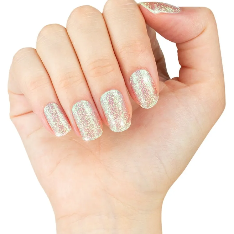 Sie erhalten die Miss Sophie’s Nail Wraps Born To Be A Unicorn im 24-er-Set in unterschiedlichen Größen. So können Sie die Nagelfolien jeweils passend für die einzelnen Nägel auswählen. Die ultradünnen Folien verschmelzen dabei perfekt mit dem Nagel und sind eine zeitsparende Alternative zu einer aufwendigen Maniküre mit Nagellack. Nutzen Sie die Nail Wraps sowohl für Finger- wie auch für Fußnägel. Die Nagelfolien halten nicht nur auf Naturnägeln, sondern auch auf lackierten Nägeln sowie Acryl-, Gel- und Shellac-Nägeln. Sie bieten einen Halt von bis zu 14 Tagen. Möchten auch Sie Nagellack durch Nagelfolie ersetzen, bringen Sie eine Folie in passender Größe auf dem Nagel an und drücken Sie sie an. Das Abstehende der Folie nach unten klappen und dann mit einer Glasnagelfeile direkt an der Nagelspitze abfeilen. Mit einem Top Coat lässt sich die Folie noch versiegeln.