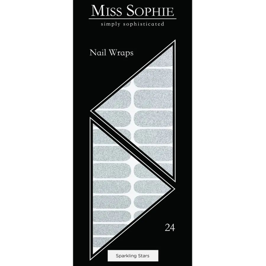 Silbern glitzernd machen die Sparkling Stars-Nagelfolien von Miss Sophie’s Ihre Nägel zu einem optischen Highlight, das unter anderem dazu geeignet ist, auffallende Outfits den letzten Schliff zu geben. Trifft dieses Design jedoch nicht ganz Ihren Geschmack, müssen Sie dennoch nicht verzagen. Denn in unserem Shop finden Sie von diesem Hersteller eine ganze Reihe weiterer Nail Wraps mit exklusiven Designs. Sie erhalten die Folien im praktisch 20er Pack.