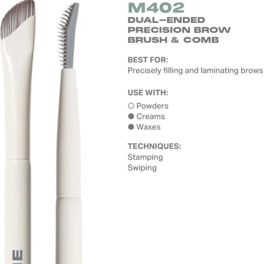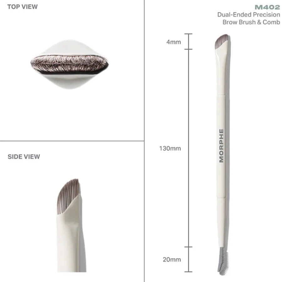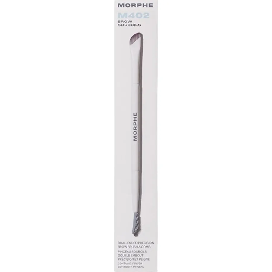 Der M402 Dual-Ended Precision Brow Brush & Comb von Morphe wird Ihr Make-up revolutionieren. Der vielseitige Augenpinsel vereint drei Funktionen für makellos definierte Augenbrauen und ein perfektes Make-up. Mit dem Präzisionspinsel tragen Sie Cremes oder Wachse in haarfeinen Strichen auf, während der Kamm die Brauen für einen natürlichen Look sanft auskämmt. Die integrierte Paddle-Seite fixiert die Brauen für einen laminierten Effekt, der den ganzen Tag hält.