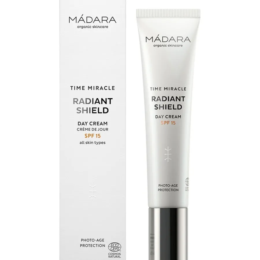 Für Ihre tägliche Hautpflege gibt es die Radiant Shield Day Cream SPF15 von MÁDARA. Die wertvolle Pflege schützt Ihre Haut vor schädlicher UVA- und UVB-Strahlung und versorgt sie mit reichlich Feuchtigkeit. Zudem erhält Ihre Gesichtshaut ein glattes und strahlendes Aussehen.