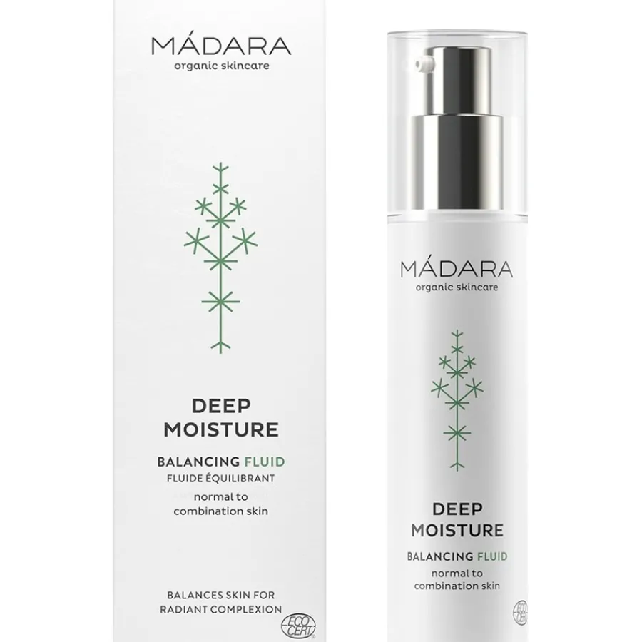 Das Deep Moisture Balancing Fluid der Marke MÁDARA ist eine hochwertige Hautpflege, die Ihnen intensive und lang anhaltende Feuchtigkeit spendet. Dazu sorgt das Serum für ein verbessertes Hautbild und Ihre hauteigene Schutzbarriere wird repariert und gestärkt. Mit seiner extraleichten Formel zieht das Fluid schnell in die Haut ein. Die Hautpflege hilft, Mischhaut zu normalisieren: Für ein ebenmäßiges Hautbild werden trockene und fettige Partien ausgeglichen.