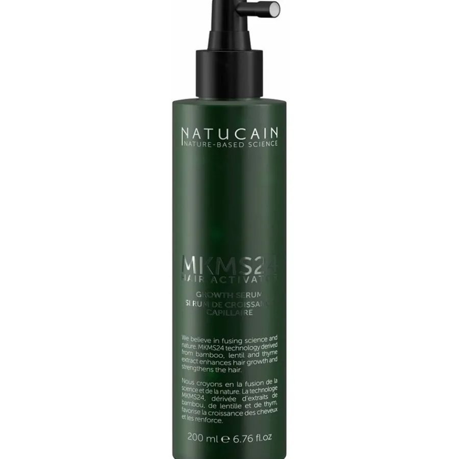 Das Hair Growth Serum von Natucain eignet sich zur Anwendung bei Männern und Frauen, die unter schütterem, dünner werdendem Haar leiden. Dabei hilft es bei hormonell und erblich bedingtem Haarausfall gleichermaßen wie bei wechseljahrsbedingtem und kreisrundem Haarausfall. Das Serum ist vegan, paraben- und sulfatfrei und enthält keine Silikone. Dank seiner hormonfreien Formel ist es frei von Nebenwirkungen wie juckende oder brennende Kopfhaut, Rötungen oder Kopfschmerzen. Bei regelmäßiger Anwendung lassen sich erste Ergebnisse bereits nach 8 bis 12 Wochen beobachten.