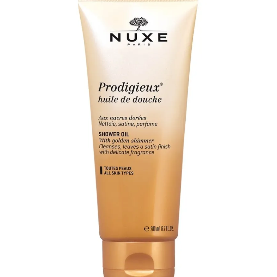 Das Nuxe Hygiene Prodigieux Huile de Douche ist ein reichhaltiges Duschöl mit goldenen Schimmerpartikeln. Es reinigt die Haut auf die sanfte Art, verleiht ihr ein seidiges Gefühl und hüllt sie in einen zarten Duft. Das Duschöl von Nuxe besitzt eine sulfatfreie Reinigungsbasis mit Süßmandelöl und kommt ohne Parabene aus. Der Goldschimmer ist mineralischen Ursprungs und schenkt der Haut einen verführerischen Glanz. Der Duft des Huile Prodigieuse mit Orangenblüten, Vanille und Magnolie unterstreicht Ihre feminine Ausstrahlung und verwöhnt die Sinne. Die Anwendung ist denkbar einfach: Das sanfte Duschöl wird auf die feuchte Haut aufgetragen und mit lauwarmem Wasser abgewaschen. Das Resultat ist eine herrlich weiche, zart schimmernde Haut.