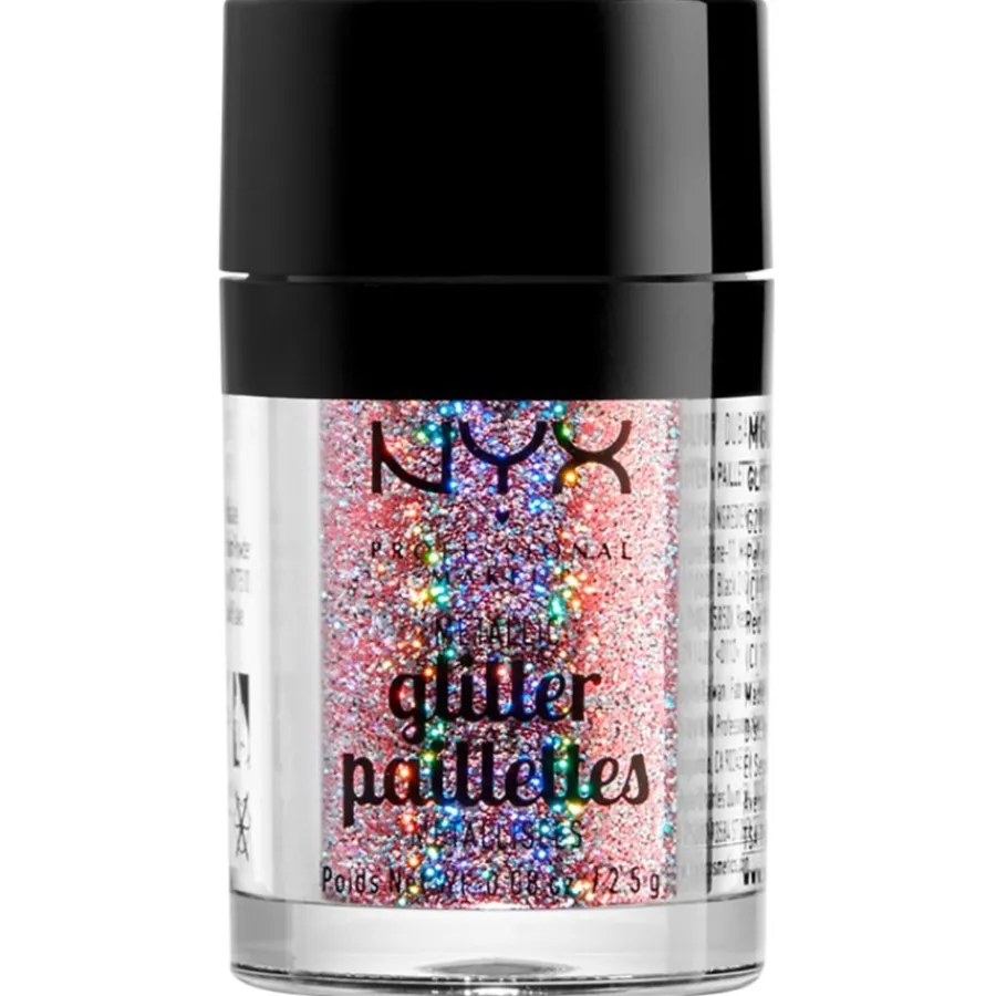 Damit der Metallic Glitter von NYX Professional Makeup auch lange an Ort und Stelle bleibt, kombinieren Sie ihn am besten mit dem Glitter Primer der Marke. Sie können den Glitzerstaub aber auch wunderbar mit Ihrer Foundation mischen und diese dann wie gewohnt auftragen. Das Ergebnis ist ein strahlender und funkelnder Teint.