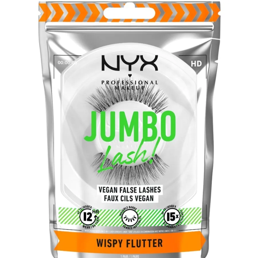 Die Anwendung ist denkbar einfach: Zunächst das gewünschte Make-up wie gewohnt auftragen. Es wird empfohlen, zunächst den wasserfesten und ultrapräzisen Eyeliner aus der Jumbo-Lash-Serie aufzutragen (optional erhältlich). Dann die Jumbo Lash Wispy Flutter von NYX Professional Makeup am inneren Augenwinkel ansetzen und entlang des Eyeliners am Wimpernkranz fixieren. Ein zusätzlicher Kleber oder ein magnetischer Liner werden nicht benötigt. Schneller und einfacher lassen sich künstliche Wimpern nicht verwenden. Zum Entfernen einfach abziehen. Die Verpackung eignet sich perfekt zur Aufbewahrung bis zur nächsten Verwendung.