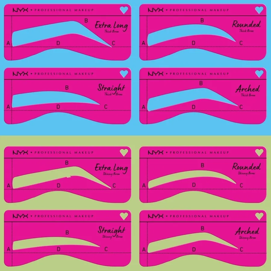 Mit den pinken Schablonen in Zero To Brow Stencil Thin Brow können Sie sich geschwungene (Arched), runde (Rounded), gerade (Straight) oder extra lange Brauen (Extra Long) zaubern. Indem Sie die Stencils von NYX Professional Makeup ausprobieren, erfahren Sie mehr darüber, welcher Look Ihnen wirklich steht. Um ein gleichmäßiges Ergebnis zu erreichen, ist von jeder Schablone nur ein Exemplar in der Verpackung enthalten. Nachdem Sie die erste Seite Ihrer Augenbrauen fertig geschminkt haben, drehen Sie das Stencil nach dem Reinigen einfach um und legen es spiegelverkehrt auf die andere Braue. So sorgen Sie dafür, dass Ihr Gesicht besonders symmetrisch wirkt.