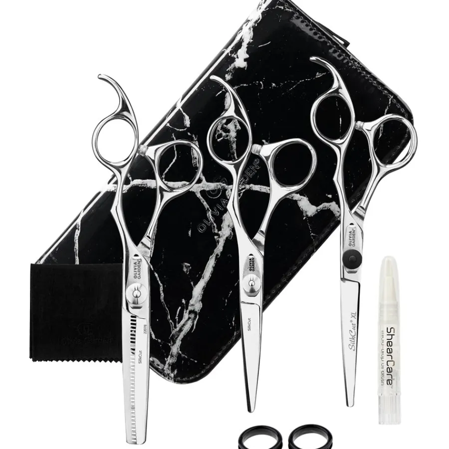SilkCut von Olivia Garden umfasst ein 3-Scheren Set in japanischer und europäischer Schleifweise. Die Haarschneideschere 5″ ist für Rechtshänder gearbeitet. Sie hat handgefertigte Scherenblätter, die sich durch Einstellrädchen im Scherendruck anpassen lassen. Genau wie bei der Haarschneideschere 5,75″ ermöglicht die ergonomische Scherenform ein entspanntes und somit ermüdungsarmes Arbeiten. Auch für den Hausgebrauch eignet sich die Effilierschere in japanischer Ausführung, selbst an feinem Haar und splissigen Spitzen.Zu den Friseurscheren liefert Olivia Garden weiteres nützliches Zubehör. So kann das 3-Scheren Set mit dem Scherenöl zwischen den Einsätzen vor Rost und Staub geschützt werden. Das Mikrofasertuch im Lieferumfang sorgt dafür, dass beim Abwischen und Einstreichen keine Kratzer auf den Edelstahl kommen. Im schwarzen Reise-Etui befinden sich breite Gummibänder, die alle Scheren fixieren. Die Spitzen werden durch Einstecken in die kleinen, eingenähten Ledertaschen vor dem Stumpfwerden bewahrt. Mit dem umlaufenden Reißverschluss ist schnelles Öffnen und Schließen jederzeit und überall möglich.