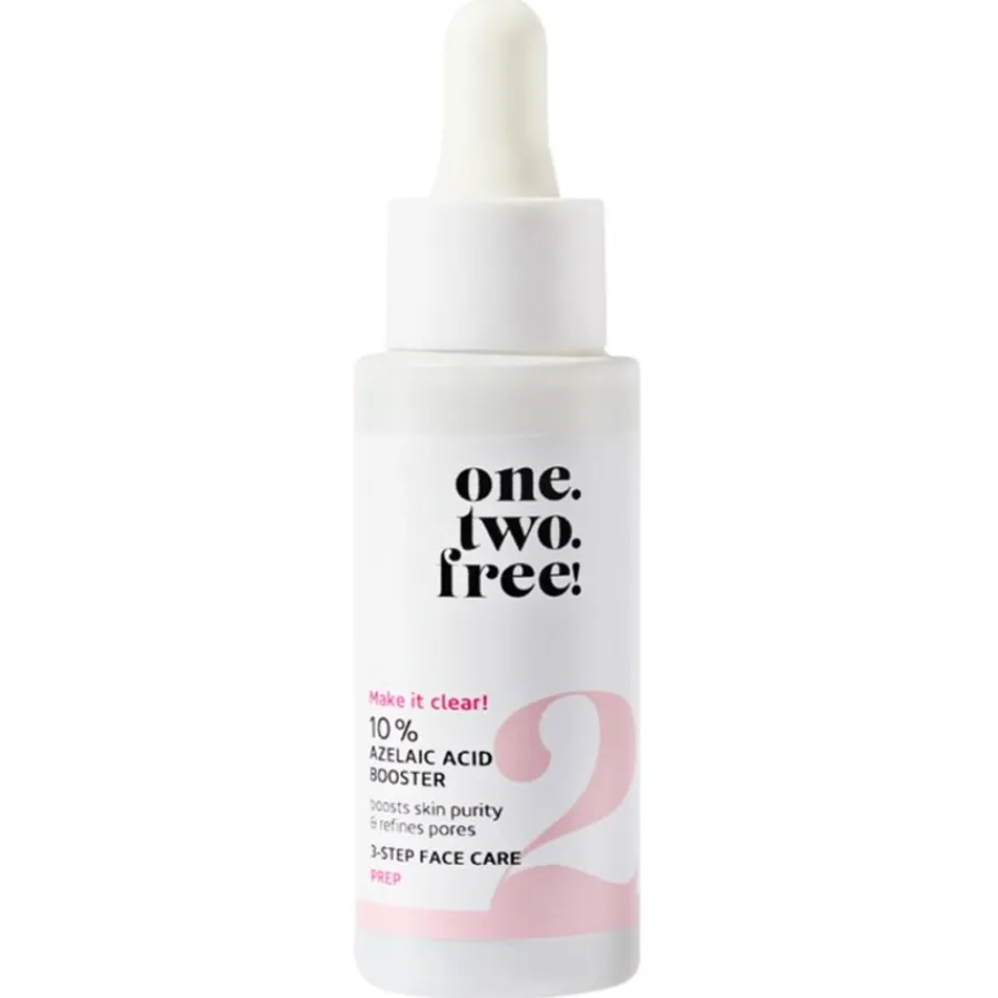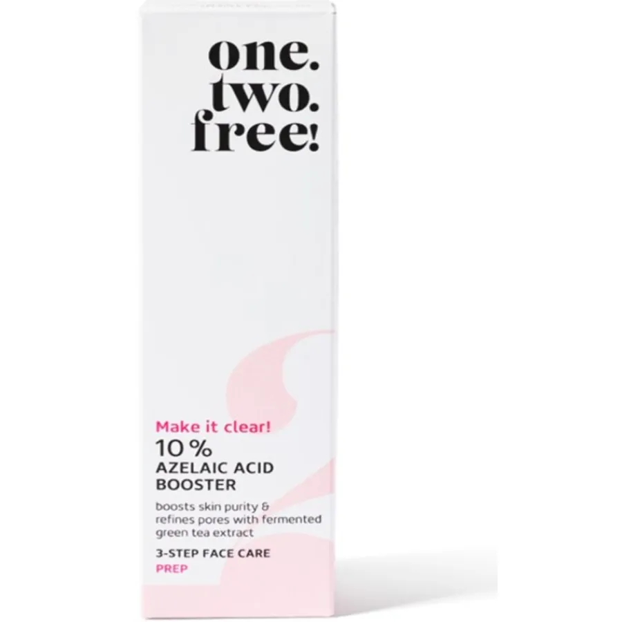 Der 10 % Azelaic Acid Booster von One.two.free! verkleinert das Erscheinungsbild der Poren, lindert Rötungen und verbessert die Elastizität der Haut. Er spendet der Haut Feuchtigkeit, stärkt ihre Abwehrkräfte und bekämpft akneverursachende Bakterien. Gleichzeitig gleicht er das Hautbild aus und klärt die Haut. Er besitzt antioxidative und entzündungshemmende Eigenschaften. Seine Formel eignet sich für alle Hauttypen. Sie ist so mild, dass sie auch auf empfindlicher Haut angewendet werden kann. Tragen Sie morgens und abends 2 bis 3 Tropfen der Gesichtspflege auf die gereinigte Haut auf. Freuen Sie sich über glatte, rosig zarte Haut und einen ebenmäßigen Teint!