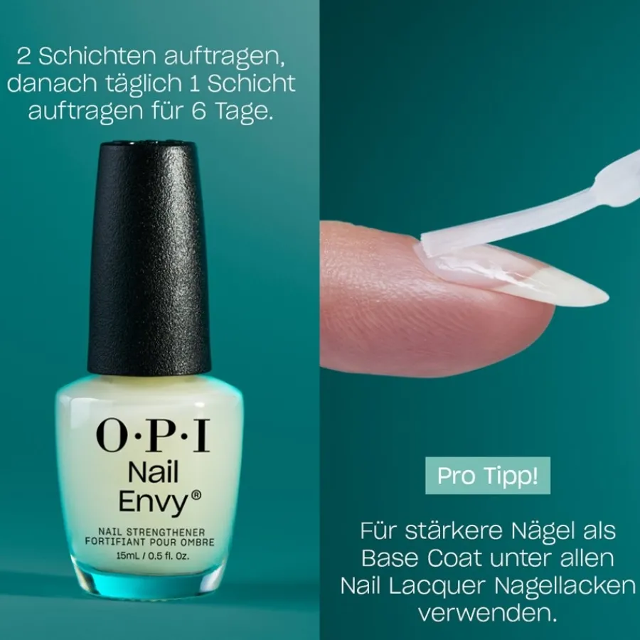 4. Genieße die stärkende Wirkung des OPI Nail Envy Pink to Envy und trage täglich eine weitere Schicht auf, um deine Nägel vor lästigem Absplittern zu schützen.