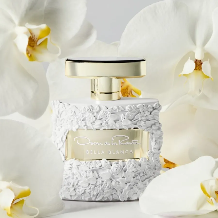 Das exklusive Eau de Parfum Spray Bella Blanca von Oscar de la Renta ist eine inspirierende Duftkomposition, die die Aura eines üppig blühenden Gartens widerspiegelt. In der Kopfnote vereinen sich zarte Freesien mit den fruchtigen Düften von grüner Birne, Cassis und Mandarine. Das Herz eröffnet einen zart erwachenden Hauch aus zarten Maiglöckchen, edlem Sambac-Jasmin, weißer Rose und duftenden Veilchenblüten. Ergänzt wird die zauberhafte Liaison durch die Basis aus Kaschmirholz, Ambroxan, Sandelholz und Pfirsichhaut. Die Aura des Duftes zeigt sich auch im auffälligen Design des dekorativen Flakons. Ganz im Zeichen des einzigartigen Modestils des Konzerns zeigt sich der Flakon mit üppiger Blütendekoration in unschuldigem Weiß. Zeitlose Eleganz symbolisiert zudem der in edlem Gold gestaltete Verschluss.