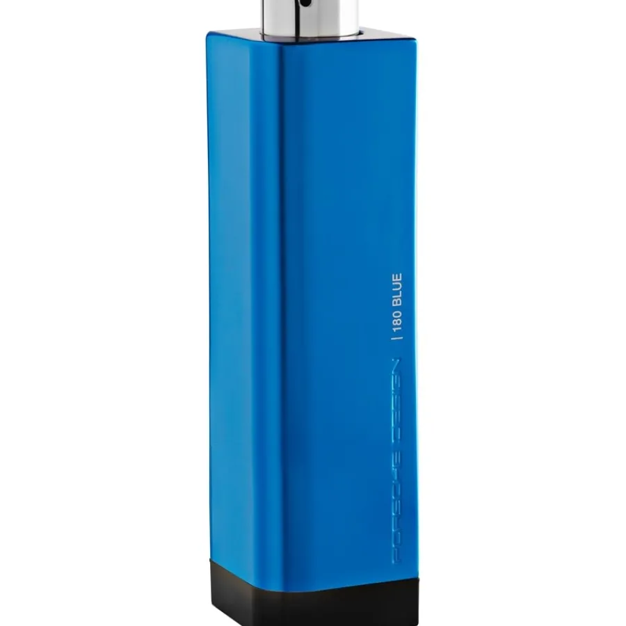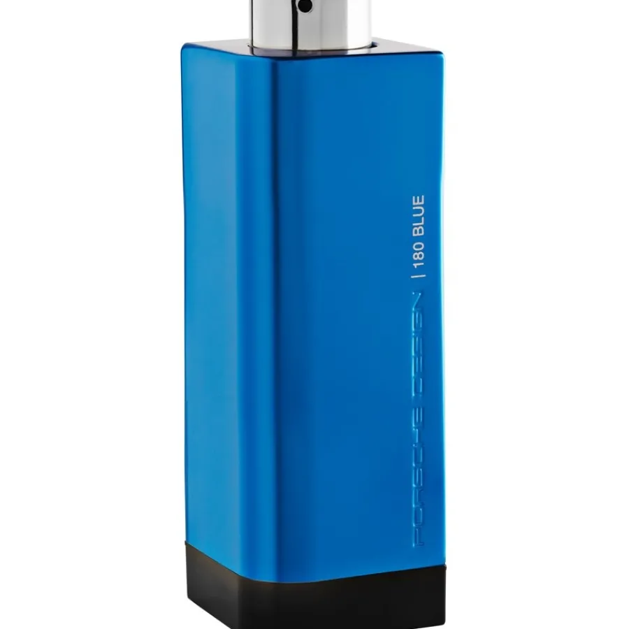 Die luftige Kopfnote von 180 Blue wird von Facetten von Zedern-Äpfeln und schwarzem Pfeffer flankiert. Der aromatisch-maskuline Kern setzt sich aus Lavendel, Muskatnuss und Muskatellersalbei zusammen. In der Basisnote verschmelzen Kaschmir und Vetiver. So unverwechselbar wie der Duft ist auch der puristische Flakon von Porsche Design. Der einzigartige Aluminiumflakon ist die perfekte Ergänzung zum Bouquet, die brillante, metallisch blaue Farbe verströmt pure Erfrischung. Das Eau de Toilette Spray besitzt einen 180-Grad-Drehmechanismus. Indem der mattschwarze Boden langsam um 180 Grad nach links bewegt wird, hebt sich der Sprühkopf automatisch nach oben. Eine Drehung nach rechts – und die Düse fährt zurück und der Flakon wird geschlossen.