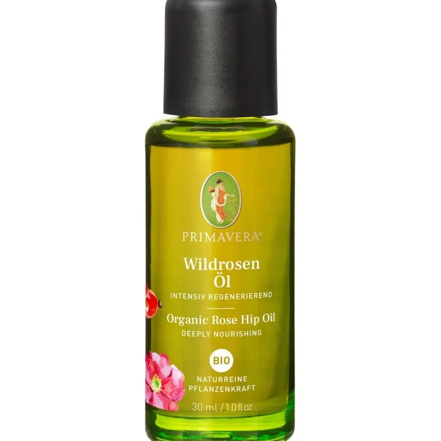 Das PRIMAVERA Wildrosen-Öl bio wird kalt gepresst aus Hagebuttenkernen gewonnen. Zudem sind Bio-Sonnenblumenöl und natürliches Vitamin E enthalten. In der Hautpflege ist es ein geschätztes Öl aufgrund seiner glättenden, intensiv hautregenerierenden und feuchtigkeitserhaltenden Eigenschaften. Speziell zur Pflege von Narben wird das Wildrosen-Öl mit seinem besonderen Fettsäurespektrum eingesetzt. Aber auch in der Schwangerschaft und Stillzeit ist das Hautöl beliebt: Die Hautelastizität fördernde Wirkung hilft, Dehnungsstreifen vorzubeugen.