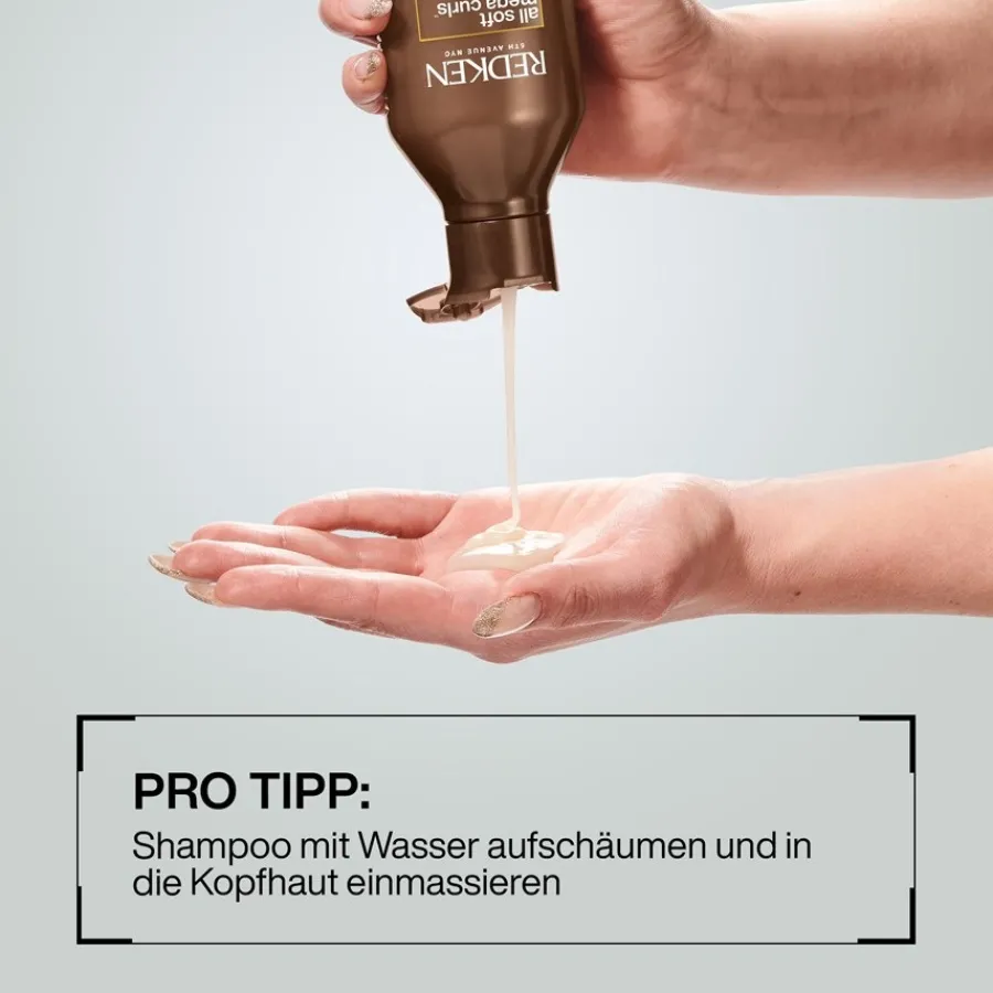 Das All Soft Mega Curls Shampoo beinhaltet Extrakte aus der Aloe Vera und einen speziellen, intensiv wirkenden Feuchtigkeitskomplex. Er versorgt ihre Haare und Locken tiefenwirksam mit Nährstoffen und Feuchtigkeit und schützt sie dadurch vor weiterer Austrocknung sowie vor daraus resultierenden Haarschäden. Tragen Sie eine kleine Menge des Shampoos von Redken auf die nassen Haare auf und schäumen Sie es gründlich auf. Auch in die Kopfhaut einmassieren. Danach gründlich ausspülen und für beste Ergebnisse anschließend das Haar mit dem passenden Conditioner behandeln.