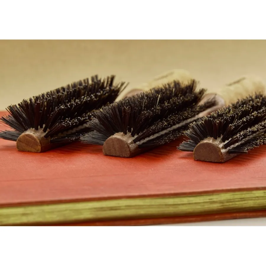 Bartbürsten sind oft oval, damit sie gut in der Hand liegen. Es gibt sie aber auch in rund oder mit einem klassischen Bürstenkörper. Im Gegensatz zu einem Bartkamm sind sie etwas sanfter zu den Barthaaren. Darüber hinaus haben sie durch die Anordnung der Borsten oft auch eine reinigende Wirkung. Je nach Modell sind die Borsten synthetisch oder tierisch.