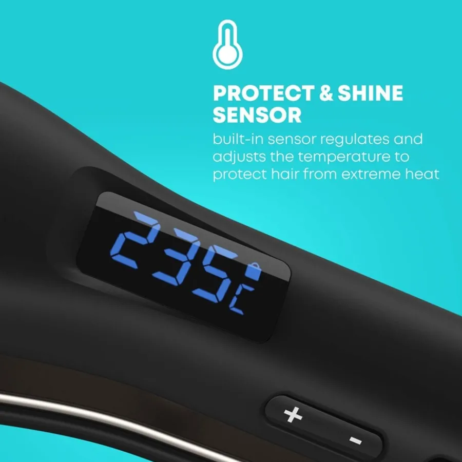 Behandeln Sie zunächst das untere, danach das Deckhaar – Strähne für Strähne. Es ist wichtig, gleichmäßige Bewegungen auszuführen, damit das Haar nicht punktuell überhitzt wird. Um abstehende Spitzen zu vermeiden, ziehen Sie das Glätteisen in einem sanften, geschwungenen Bogen. Zum Abschluss fixieren Sie die Frisur mit einer Anti-Frizz-Pflege oder Haarspray, um sie widerstandsfähig gegen äußere Einflüsse zu machen.