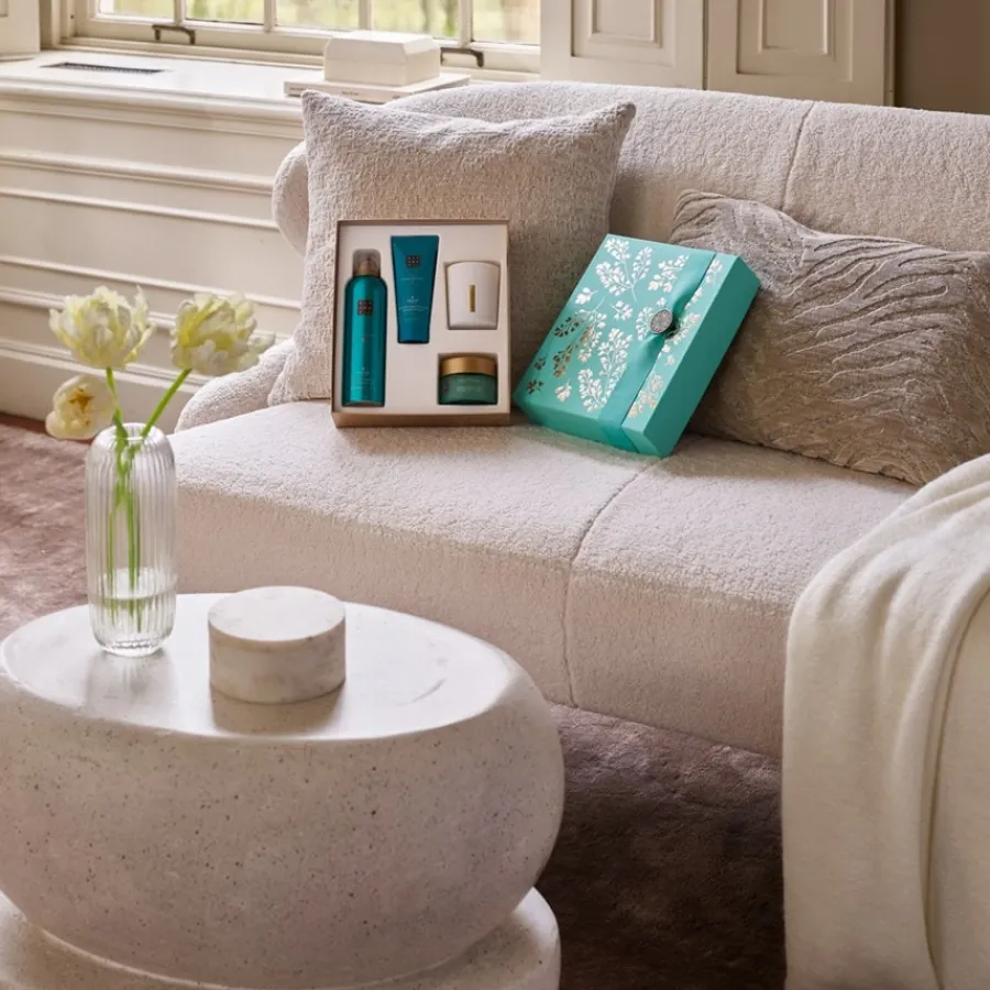 Es soll dazu beitragen, positive Energie und gutes Karma zu leben und auszustrahlen. Fragranzen wie weißer Tee und Lotosblüte, hochwertige Pflanzenöle von Distelsaaten und Macadamia, belebende, nährende und pflegende Auszüge von Algen und Tang, Aloe und Avocado sind für The Ritual Of Karma unverzichtbare Zutaten. Zum Geschenkset von RITUALS zählen Softening Body Scrub, mit dem regelmäßig die Wohlfühl-Session beginnt. Das Körperpeeling bereitet die Haut auf das sanft reinigende und pflegende Foaming Shower Gel vor, das sich auch zur Anwendung als Maske eignet. Anschließend wird die Hautpflege mit der feuchtigkeitsspendenden, reichhaltigen 48h Hydrating Cream verwöhnt. Danach sind Ruhe und Entspannung angesagt, die durch den zarten Duft der Scented Candle und ihren behaglichen Schein verstärkt werden.