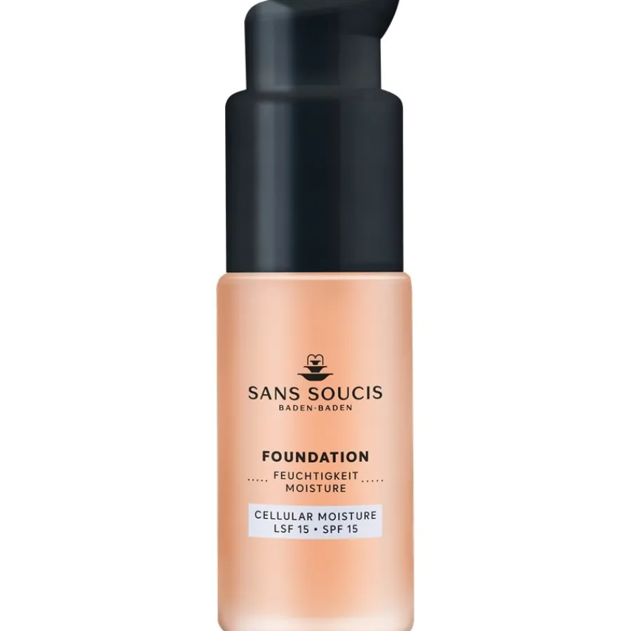 Die Formulierung der Cellular Moisture Foundation von Sans Soucis ist mit wertvollen Wirkstoffen angereichert, die den Feuchtigkeitshaushalt der Haut unterstützen. So enthält die Hautpflege Hyaluronsäure, die als einer der besten Feuchtigkeitsspender gilt und den Natural Moisturizing Factor unterstützt. So wird dem Feuchtigkeitsverlust der Haut im Gesicht wirksam vorgebeugt, während gleichzeitig ihre Elastizität, Spannkraft und Geschmeidigkeit gefördert werden. Zudem enthält die Foundation Algenextrakt. Dieser ist reich an Mineralien, verbessert ebenfalls den Feuchtigkeitshaushalt der Haut und unterstützt sie dabei, die Feuchtigkeit lang anhaltend zu speichern. Nicht zuletzt ist die Formel mit Thermalwasser aus Baden-Baden angereichert, das den natürlichen Hautstoffwechsel fördert.