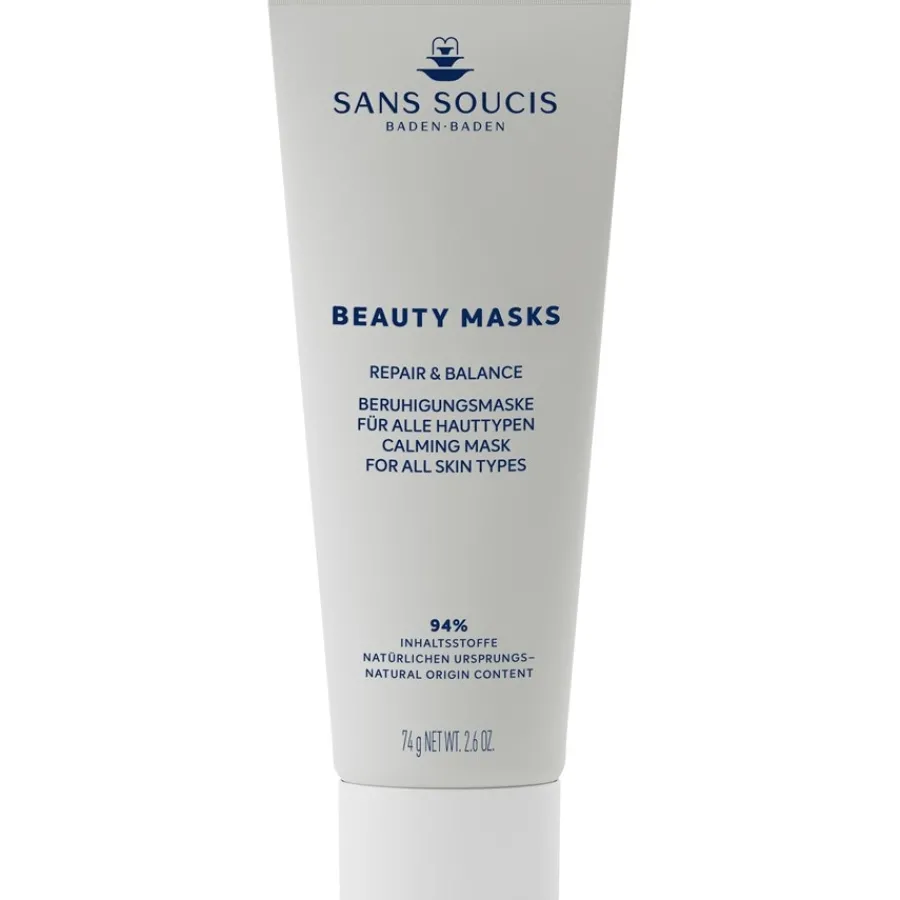 Die BEAUTY MASK Repair & Balance Maske von Sans Soucis beruhigt die Haut und lindert Hautreizungen und Irritationen. Indem sie die Haut tiefenwirksam hydratisiert, bringt sie ihren Feuchtigkeitsgehalt wieder ins Gleichgewicht. Sie kurbelt die Regeneration der Epidermis an und stärkt die Hautbarriere. Ihre Formel ist für alle Hauttypen geeignet und setzt sich zu 94 % aus Bestandteilen natürlichen Ursprungs zusammen. Tragen Sie die Hautpflege auf Ihr gereinigtes Gesicht auf. Lassen Sie die Textur 10 Minuten lang einwirken und nehmen Sie die restliche Maske danach ab. Genießen Sie rundum gepflegte, rosig zarte und entspannte Haut mit den erlesenen Masken von Sans Soucis!