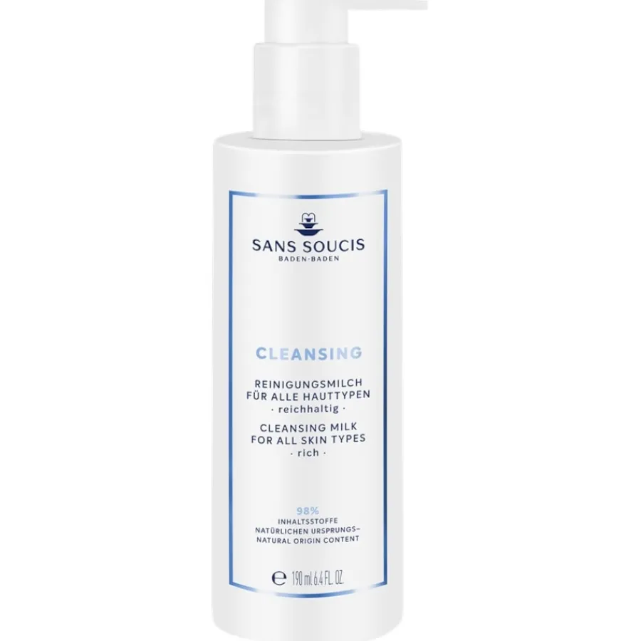 Die Reinigungsmilch von Sans Soucis reinigt die Haut sanft von Unreinheiten und Make-up-Resten. Sie kräftigt den Säureschutzmantel der Haut und erhöht ihr Feuchtigkeitsniveau. Irritationen, Schwellungen und Rötungen mildert sie im Handumdrehen. Sie nährt die Haut und erfrischt sie. Ihre Formel ist frei von Tierversuchen, Parabenen, Paraffinen, Silikonen, Mikroplastik, Lactose und Gluten. Sie eignet sich für alle Hauttypen. Tragen Sie die Reinigungsmilch auf Ihr Gesicht auf, massieren Sie sie in die Haut ein und spülen Sie sie sorgfältig ab. Genießen Sie ein entspanntes, weiches und rundum gepflegtes Hautgefühl!