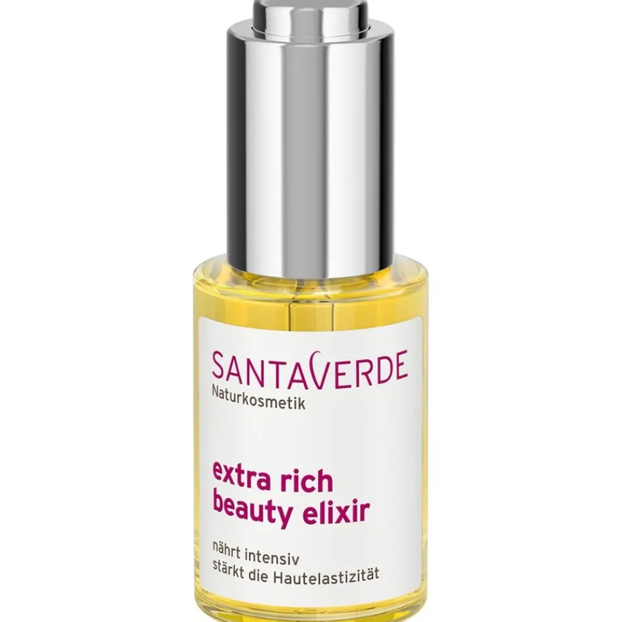 Das Aloe Vera Extra Rich Beauty Elixir von Santaverde hydratisiert und nährt die Haut lang anhaltend. Es unterstützt die Regeneration der Haut und verbessert ihre Elastizität. Die Haut wird beruhigt und gekräftigt, ihre Kollagenproduktion wird gefördert. Geeignet ist die Gesichtspflege für normale, trockene, strapazierte und reife Haut. Sie ist vegan und frei von Tierversuchen. Tragen Sie zwei bis drei Tropfen der samtigen Hautpflege auf die Haut auf und massieren Sie sie sanft ein. Erleben Sie strahlend schöne, geschmeidig glatte Haut!
