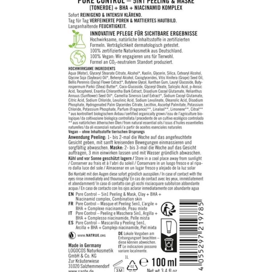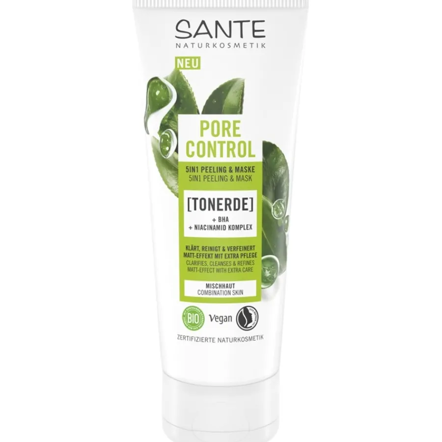 Pore Control 5in1 Peeling & Maske mit Tonerde, BHA & Niacinamid Komplex von Sante Naturkosmetik für glatte Haut