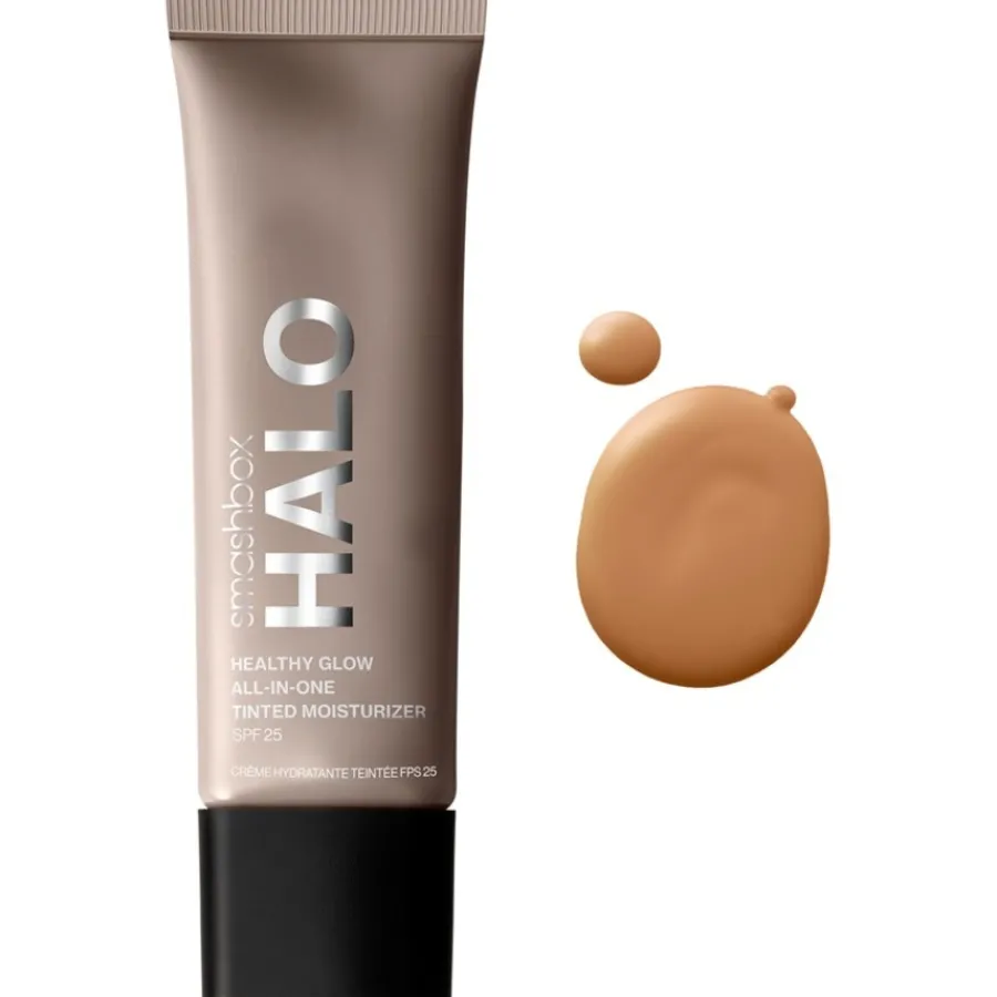 Der Halo Healthy Glow All-in-One Tinted Moisturizer von smashbox pflegt die Haut perfekt und funktioniert gleichzeitig als Foundation. Dabei ist er beständig gegen Schweiß und Feuchtigkeit und setzt sich nicht in feinen Linien ab. Er begeistert mit seiner Deckkraft, die den ganzen Tag hält. Seine Rezeptur mit Rosenextrakt, Hyaluronsäure, Niacinamid, Goji-Beeren und Peptiden hydratisiert die Haut lang anhaltend, polstert sie auf und schützt sie vor Sonneneinstrahlung und Umweltstress. Er macht die Haut geschmeidig und beugt Anzeichen der Hautalterung vor. Tragen Sie die Pflege täglich auf Ihr Gesicht auf. Freuen Sie sich über seidig weiche, ebenmäßige Haut und ein strahlendes Make-up!