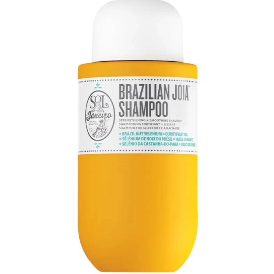 Das Brazilian Joia Shampoo hat den Duft der beliebten Bum Bum Cream. Es kommt mit Pistazien- und Mandelnoten daher. Darauf folgt eine florale Herznote von Jasmin und Heliotrop, die von Sandelholz und Karamell abgeschlossen wird. Die nährenden Inhaltsstoffe ziehen angenehm ein. Das Haar wird schonend gereinigt und durch keine überflüssigen Zusatzstoffe belastet. Für normales, feines und mittleres Haar bietet dieses luxuriöse Kosmetikprodukt von Sol de Janeiro eine nachhaltige Pflege.Diese Haarpflege von Sol de Janeiro enthält keratinähnliche Mikrokapseln, die die Haarstruktur mit pflanzlichen Stoffen reparieren. Die damit verbundene natürliche Versiegelungstechnolgie Sol Seal hat sich das Unternehmen extra patentieren lassen. Pflegende Essenzen der Buriti und wertvolles Paranussöl sind im Produkt enthalten. Sulfate enthält dieses Shampoo nicht. Mit seinem hübschen Produktdesign springt das Brazilian Joia Shampoo auch optisch sofort ins Auge.