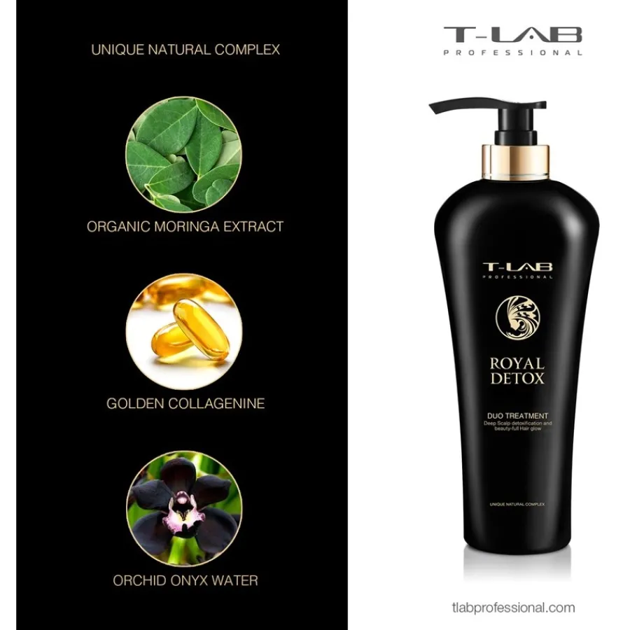 „Royal Detox Duo Treatment“ ist mit einem EINZIGARTIGEN NATÜRLICHEN KOMPLEX auf der Basis von zertifizierten biologischen Inhaltsstoffen zur Entgiftung und zum Schutz vor Umweltverschmutzung formuliert.