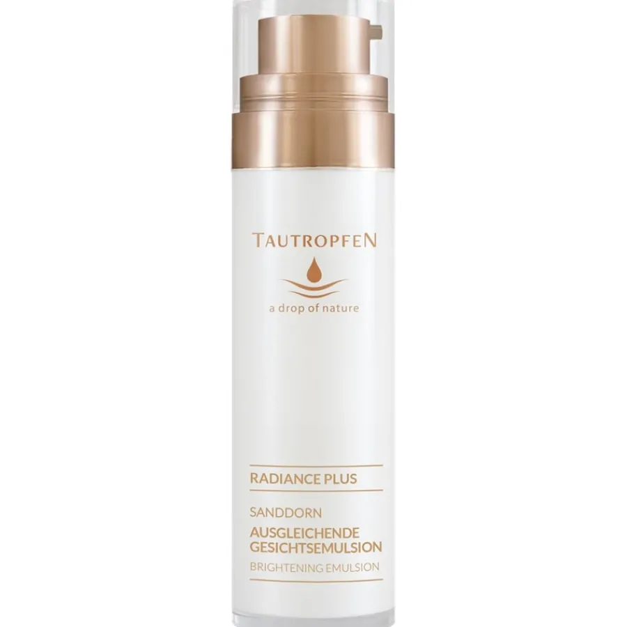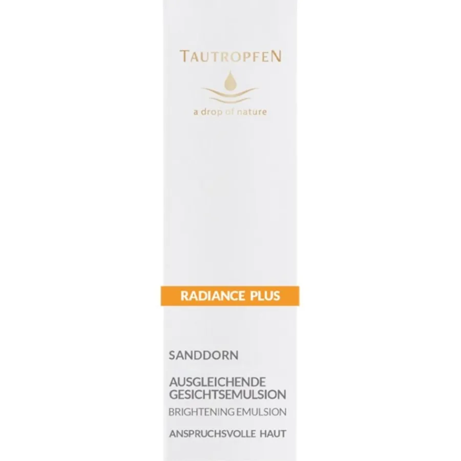 Die Radiance-Plus-Gesichtsemulsion enthält sorgfältig ausgewählte Pflanzenextrakte aus Traube, Walderdbeere und Sanddorn. Diese sind besonders reich an Vitaminen, die freie Radikale unschädlich machen und vorzeitiger Hautalterung entgegenwirken. Auch gegen Pigmentflecken können die Pflanzenextrakte bei regelmäßiger Anwendung wirken. Die ebenfalls enthaltene Hyaluronsäure bindet große Mengen Feuchtigkeit und sorgt so für eine optimale Hydratisierung. Tipp: Wenden Sie die Ausgleichende Gesichtsemulsion in Kombination mit dem Gesichtspflegeöl von TAUTROPFEN an, um die Hautpflege zu optimieren. Tragen Sie dabei zuerst das Gesichtspflegeöl auf, gefolgt von der Gesichtsemulsion.