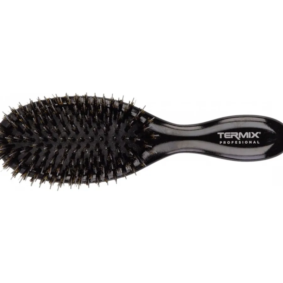 Dank der Ionisierung der Nylonborsten und der natürlichen Wildschweinborsten sorgt die Paddle Brush Hair Extensions von Termix für mehr Glanz im Haar und eine sanfte Stimulation der Kopfhaut. Die Entwirrungsbürsten sind in zwei Ausführungen erhältlich: Wählen Sie zwischen der großen oder der kleinen Variante. Letztere passt auch optimal in die Handtasche für die Verwendung unterwegs. Mit den Bürsten lassen sich sowohl trockene als auch nasse Haare kämmen und pflegen. Dabei liegen die Tools aufgrund des ergonomisch geformten und rutschfesten Griffs sicher und komfortabel in der Hand.