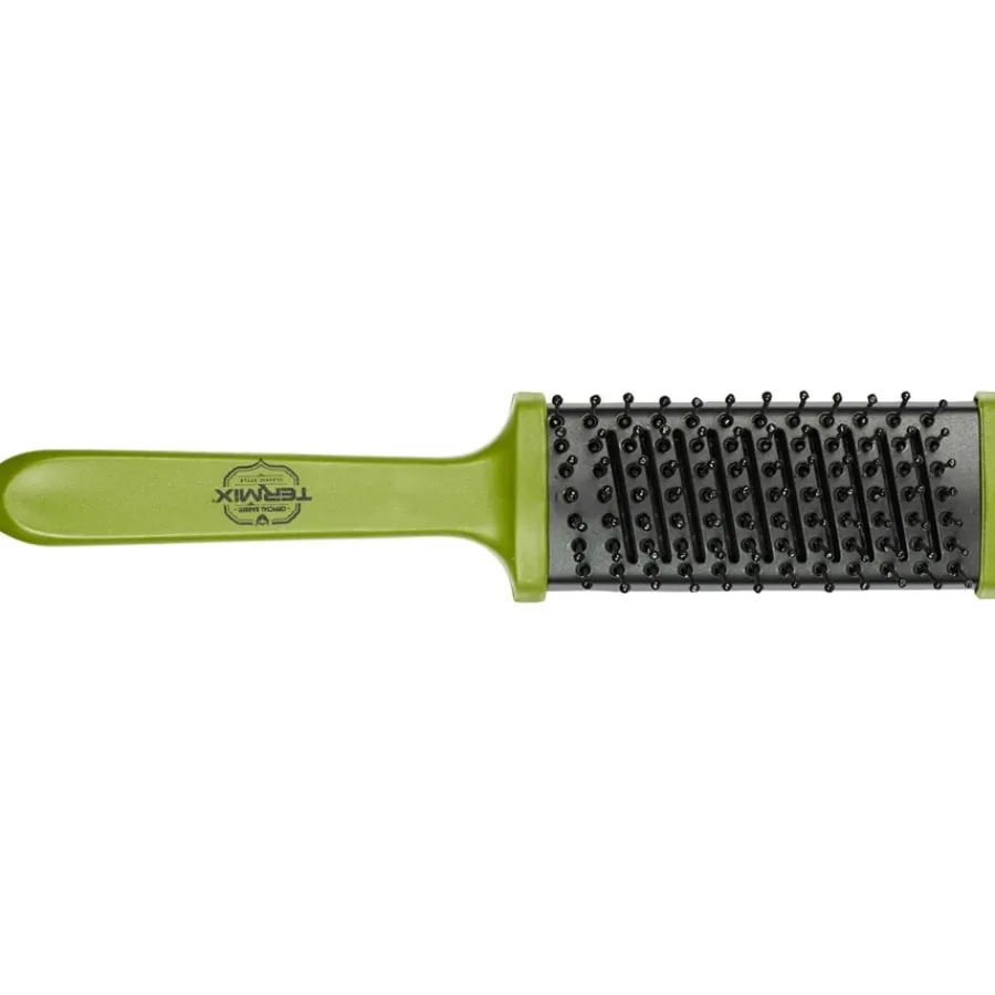 Diese Bürste eignet sich für die Haartypen Medium und Lang. Sie hat flache Bürsten, deren spezielle Fasern die das Haar vor dem Brechen schützen. Sie können weitere Beschädigungen der Haarstruktur ausschließen. Dabei spielt es keine Rolle, ob nasses, feuchtes oder komplett trockenes Haar gekämmt wird. Die Barber Thermal Flat Brush kann alleine oder im Zusammenspiel mit einem Haartrockner eingesetzt werden.Die Barber Thermal Flat Brush kann als professionelles Styling-Werkzeug eingesetzt werden. Der Bereich unter den Bürsten ist belüftet. Mit schnellen Bewegungen können Sie mehr Luft in die Haare bringen. Diesen wird dadurch mehr Volumen verliehen. Im gleichen Zug wird der Ansatz angehoben. Das sind ideale Voraussetzungen, um besondere Frisuren wie einen Pompadour zu kreieren. Hohe Temperaturen durch Reibung entstehen nicht. Das ermöglicht TERMIX durch eine spezielle Keramikbeschichtung.