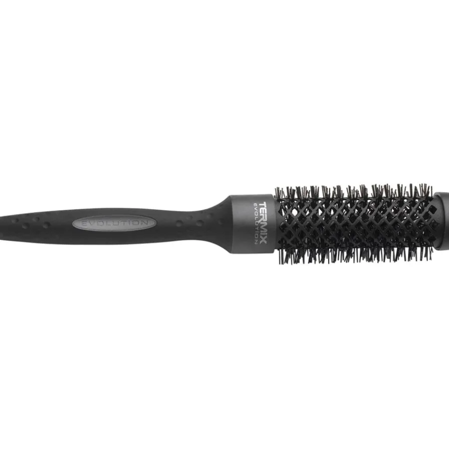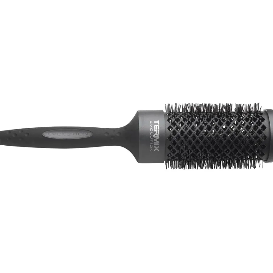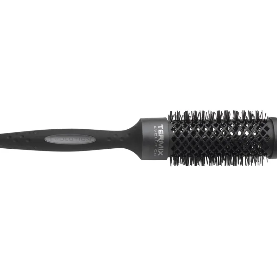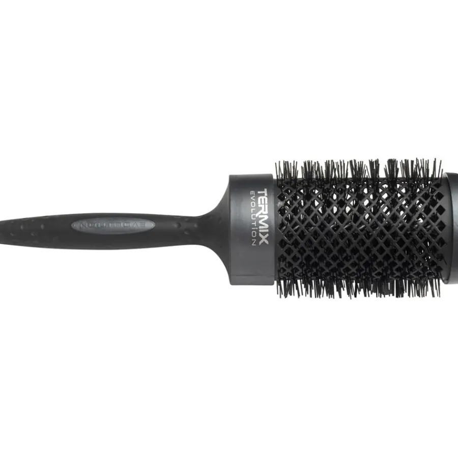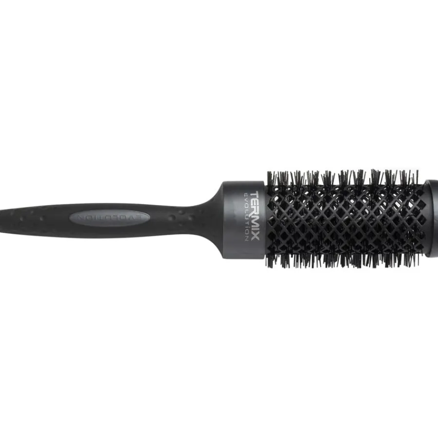 Alle Rundbürsten der Evolution-Plus-Serie von Termix haben einen Bürstenkörper, der mit rautenförmigen Öffnungen versehen ist. Dadurch kann die warme Luft beim Föhnen wesentlich besser um Ihr Haar herum zirkulieren und der Abtransport der Feuchtigkeit gelingt schneller. Das verkürzt die Föhnzeit drastisch, was wiederum zur Reduzierung von Haarschäden beiträgt. Mit den Bürsten der Serie lassen sich unter anderem hervorragend Locken und Wellen legen, aber auch glatte Styles sind damit für sämtliche Haartypen kein Problem.