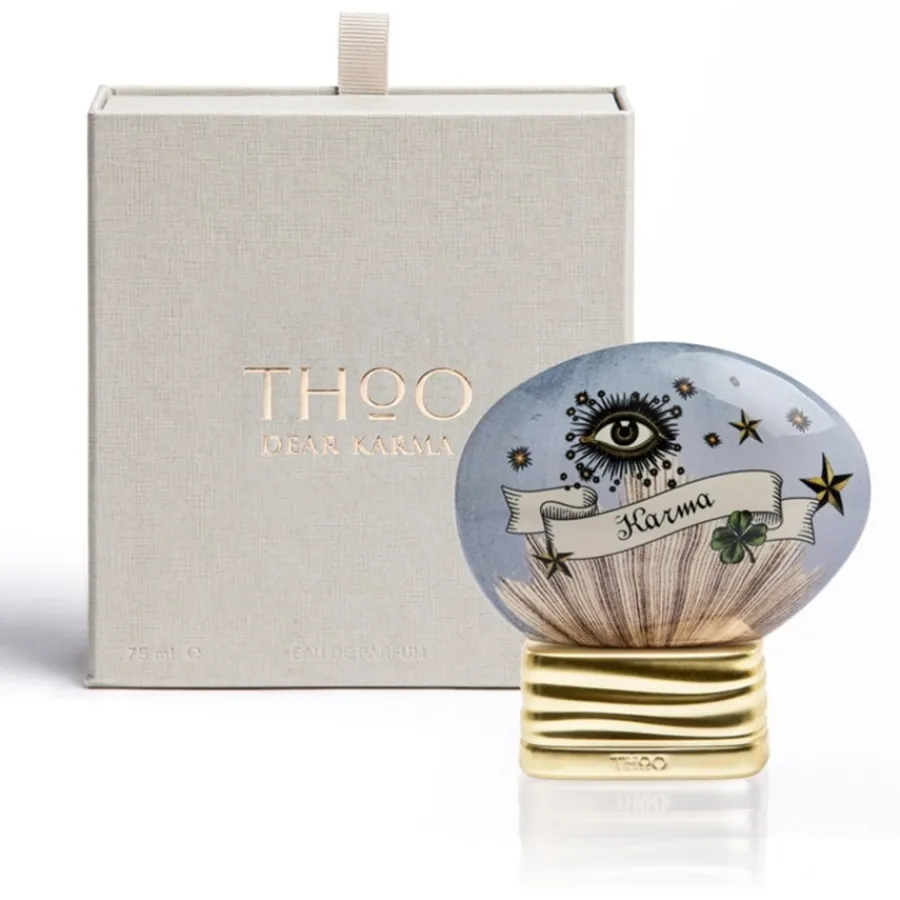 Das The House of Oud Dear Karma Eau de Parfum Spray ist die fünfte Kreation aus der Crazy Collection des renommierten Dufthauses. Auch dieses Parfum geht ungewohnte Wege – und schafft das voller Mut, mit einem schier ungebrochenen Tatendrang und einem Hauch des Mystischen. Der Flakon, traditionell in Eiform, ist ein Blickfang der Extraklasse. Die mystischen Elemente, die Erinnerungen an das Zeitalter der Alchemie wecken, sind dort stilistisch geschickt in Szene gesetzt. Während sich das Parfum optisch selbst auf einen goldenen Sockel trägt, wartet das wirkliche Highlight auf der Haut – und zwar ab dem ersten Spritzer!