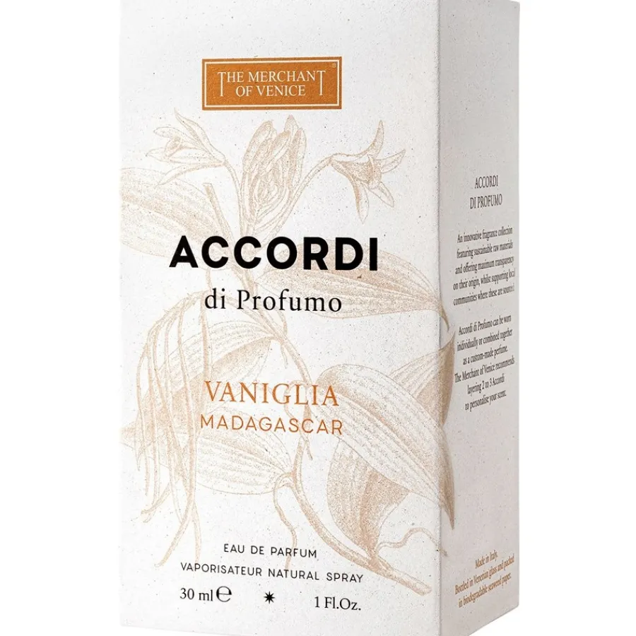 THE MERCHANT OF VENICE steht in der reichen Tradition der Parfümherstellung in Venedig. Die italienische Handelsstadt fing bereits vor Jahrhunderten an, mit dem Orient Handel zu betreiben. So gelangten wertvolle Rohstoffe nach Venedig, die es in Europa nicht gibt. Später kam noch der Asienhandel hinzu. Für die Parfümeure war und ist Venedig ein Paradies. Es verwundert nicht, dass bis heute exquisites Parfum mit ausgesuchten Rohstoffen in der Stadt produziert wird.Das wunderbare Vaniglia Madagascar Eau de Parfum Spray stammt von Gaël Montero. Als Basis für einen linearen Unisexduft eignet sich Vanille hervorragend. Edle Sorten wie die hochwertige Madagaskar-Vanille entfalten einen komplexen Duft. Er kann würzige, fruchtige oder blumige Akzente enthalten. Vaniglia Madagascar lässt sich sehr gut mit einem anderen Parfum layern. Am besten eignen sich dazu die anderen Kreationen aus der Kollektion Accordi di Profumo.