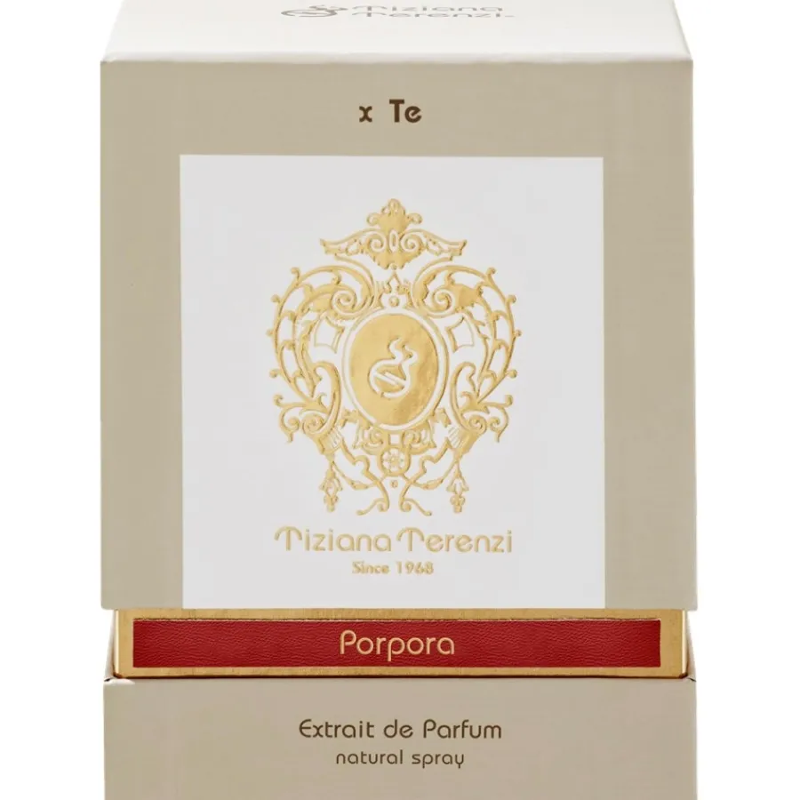 In der Kopfnote entfalten Gewürznelke, Himbeere, Rosen Absolue und Zimt ihre sinnlichen Aromen. Im Herzen folgen bulgarische Rose, Mohn, Patchouli und Weihrauch. Die Basis wird von Klängen von Amber, Benzoe, Kastanienholz, Moschus und Myrrhe gebildet und rundet diesen Luxusduft raffiniert und harmonisch ab. Namhafte Meisterparfumeure haben Evelino Terenzi – den Inhaber des Luxuslabels – dabei unterstützt, diese außergewöhnliche Duftkomposition zu entwickeln. Der rote massive Glasflakon mit goldenem Verschluss ist minimalistisch gestaltet – typisch für Tiziana Terenzi. Das Porpora Extrait de Parfum kann das ganze Jahr über getragen werden, kommt aber besonders gut in den kühleren Jahreszeiten zur Geltung. Aufgrund seiner Intensität stellt dieser Duft seine Trägerin oder seinen Träger perfekt am Abend oder zu besonderen Anlässen ins verdiente Rampenlicht.
