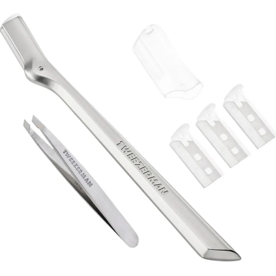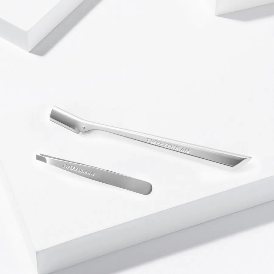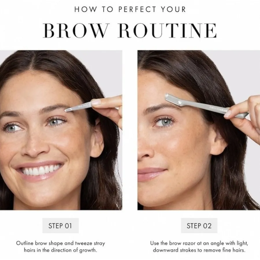 Anders funktionieren die Face + Brow Razor. Mit den feinen Klingen können Sie eine chemiefreie Haarentfernung im Gesicht vornehmen und Ihre Brauen trimmen, ausdünnen und in Form bringen. Für die Brauen verwenden Sie die kleinere der beiden Klingen in leicht abwärts gerichteten Bewegungen.
