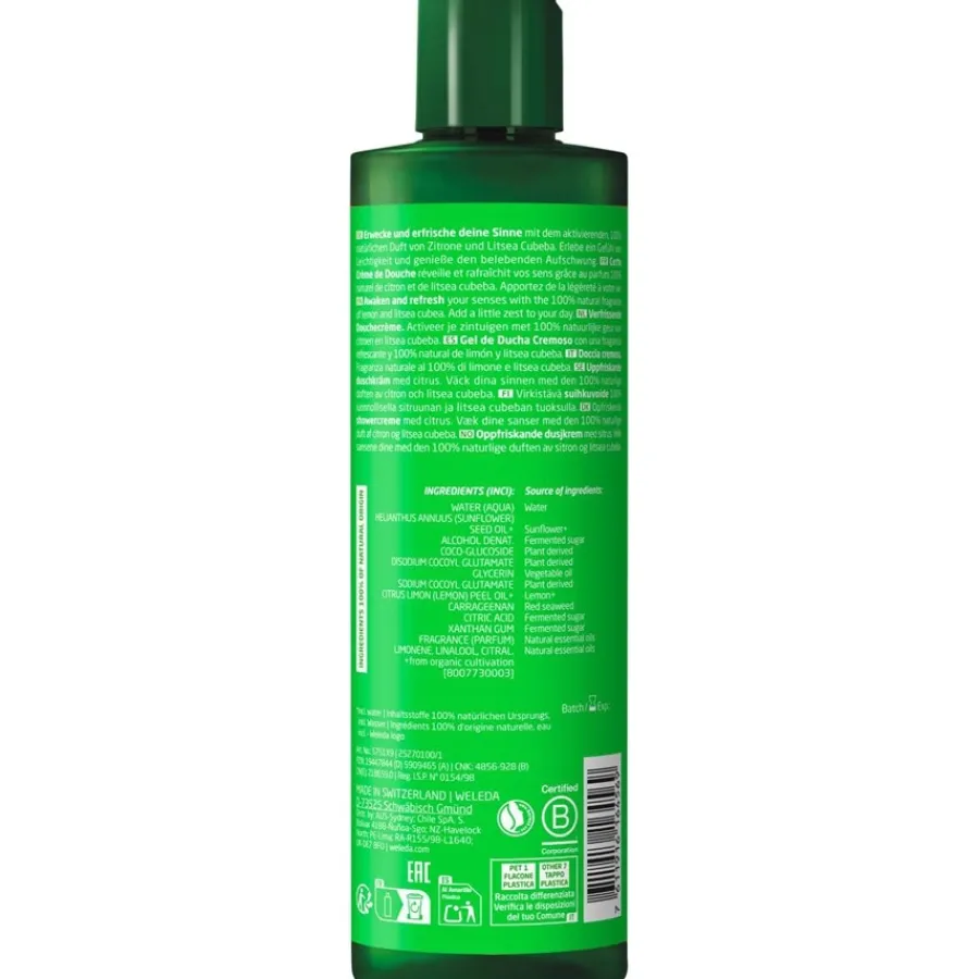 Die Marke Weleda stellt bereits seit 1921 hochwertige Naturkosmetik her. In die Pflegeprodukte der Marke gelangen ausschließlich wertvolle Inhaltsstoffe aus der Natur. Ob Arnika, Sesamöl, Mandelöl oder Birke – der Hersteller setzt auf die Power der Natur. Wer nach einem Frische-Kick am Morgen und einer sanften Pflege zugleich sucht, wird mit der Erfrischungsdusche Zitrus glücklich. Verteilen Sie eine kleine Menge des Duschgels auf Ihrer Haut, bis es aufschäumt. Spülen Sie die Duschpflege Refresh anschließend gründlich ab.
