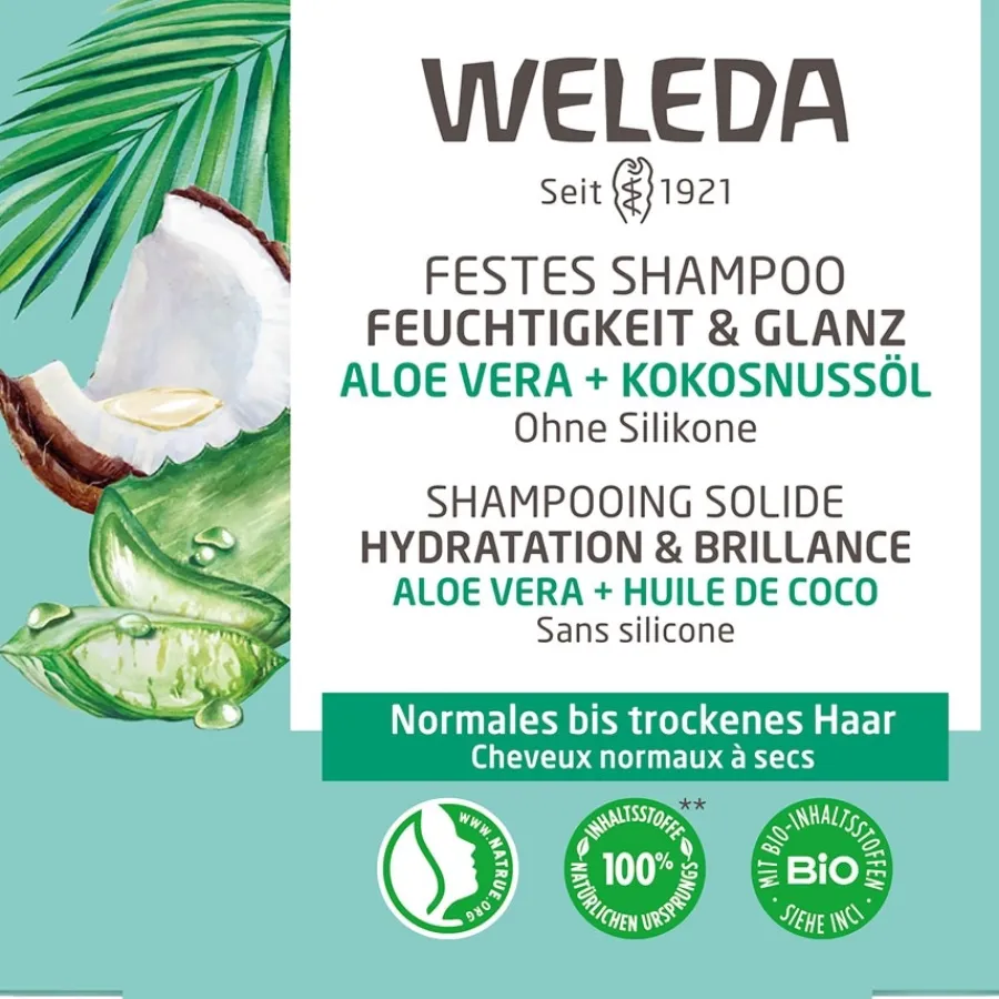 Die Marke Weleda liegt mit einem Produkt wie Festes Shampoo Feuchtigkeit & Glanz voll im Trend. Das Shampoo in Form eines Seifenstückes kommt ohne Silikone, Konservierungsstoffe und Plastikverpackung aus, was der Umwelt zugutekommt. Zudem ist es in der Regel ergiebiger als die flüssigen Varianten und schont dadurch den Geldbeutel. Durch die kompakte Größe und das geringe Gewicht eignet sich die feste Haarpflege optimal als Begleiter im Abenteuerurlaub und kann problemlos sogar im Handgepäck mit ins Flugzeug kommen.