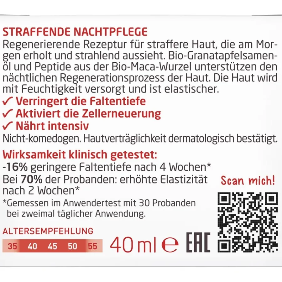 Bezeichnung Straffende Nachtpflege Granatapfel & Maca-Peptide, Nährt intensiv, st…