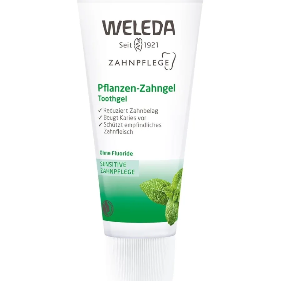 Im Pflanzen Zahngel von Weleda besteht der Putzkörper aus natürlicher Kieselsäure. Sie stellt eine gründliche Reinigung Ihrer Zähne sicher, ohne dabei den Zahnschmelz anzugreifen. Dadurch trägt die Zahnpaste aktiv zum Erhalt der Zahnsubstanz bei. In der Zahncreme sind zudem Auszüge aus der Ratanhiawurzel enthalten. Sie können helfen, das Mundgewebe zu straffen und dadurch Zahnfleischbluten wirksam vorzubeugen. Weitere Pflanzenauszüge helfen, die empfindliche Mundflora im Gleichgewicht zu halten. Unter anderem sind Auszüge aus Kamille und Myrrhe enthalten. Das Pflanzen Zahngel von Weleda für die individuelle Mundpflege bietet Ihnen einen sehr milden und erfrischenden Minzgeschmack.