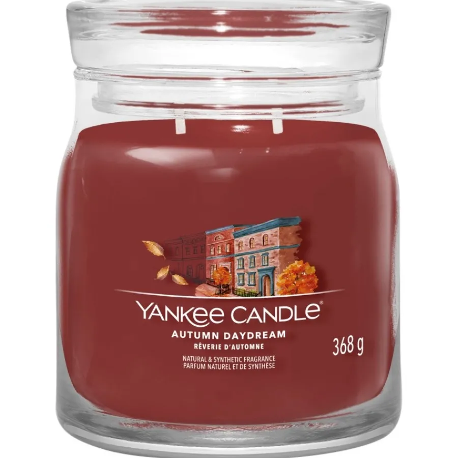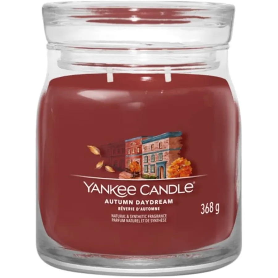 Die Zweidocht-Kerze in der Duftrichtung Autumn Daydream ist, wie alle Duftkerzen von Yankee Candle, aus einer hochwertigen Sojawachsmischung mit naturgetreuen Düften hergestellt. Die Farbe des Wachses und die wunderschöne Illustration des Etiketts machen das Kerzenglas zu einem echten Blickfang in jedem Zuhause und unterstreichen die Wirkung, die der Raumduft vermittelt. Bei Autumn Daydream sorgen Gewürznelke, Muskatellersalbei und Kaki in der Kopfnote, Rhabarber, Lavendel und Geranie in der Herznote und Eukalyptusholz und Balsam in der Basisnote für eine entspannende, wohnliche Atmosphäre zu Hause.Ein Duft, der Wohlgefühl und Behaglichkeit schenkt, um den Herbst in seiner ganzen Schönheit zu genießen.