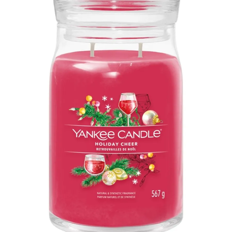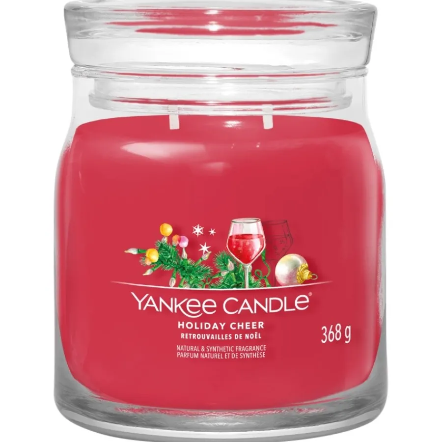 Yankee Candle Duftkerzen stehen für exzellente Qualität und authentische Signature-Duftnoten. Holiday Cheer vermittelt hier die Anmutung von Brombeerwein, Kardamom und Vanillezucker, alles eingefangen im Duft einer Kerze. Eine Sojawachsmischung mit zwei Dochten sorgt für ein ungetrübtes Kerzenvergnügen.Dieser Duft holt eine zauberhafte Stimmung in das Haus. Nicht nur zu Weihnachten verbreitet sich eine warme, gemütliche Atmosphäre, die uns in dieser hektischen Zeit die notwendige Entspannung gibt. Keine Duftkerze wie jede andere. Die Duftnote bleibt in Erinnerung und schwebt in den Räumen, ohne zu irritieren. Die Marke Yankee Candle ist seit 1969 intensiv dabei, bezaubernde Düfte in Kerzen zu bringen. Mittlerweile ist das Unternehmen der führende Hersteller in diesem Segment in den USA.Es gibt kaum eine Duftrichtung, die man dabei für Kerzen bislang nicht aufgegriffen hat. So entstehen immer wieder neue faszinierende Duftharmonien, wie jetzt Holiday Cheer. Ein wunderbares duftiges Geschenk für liebe Menschen und für sich selbst.