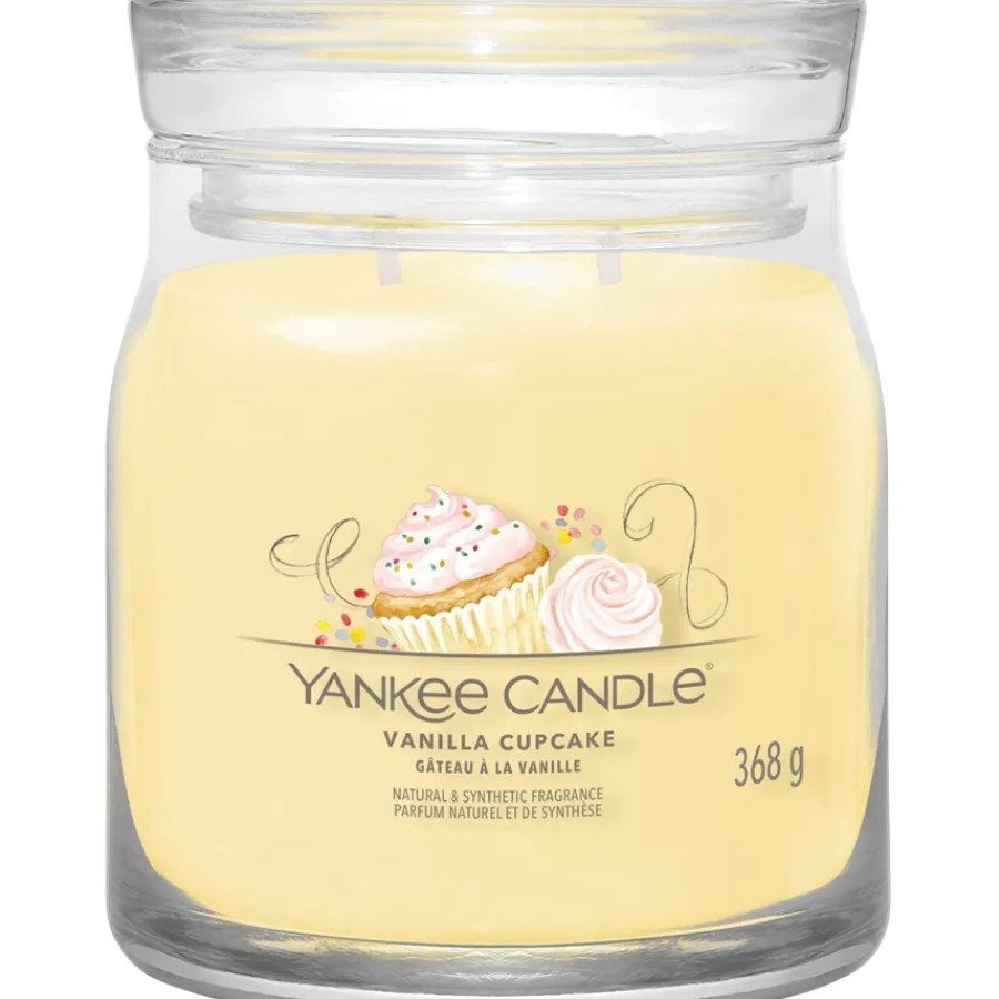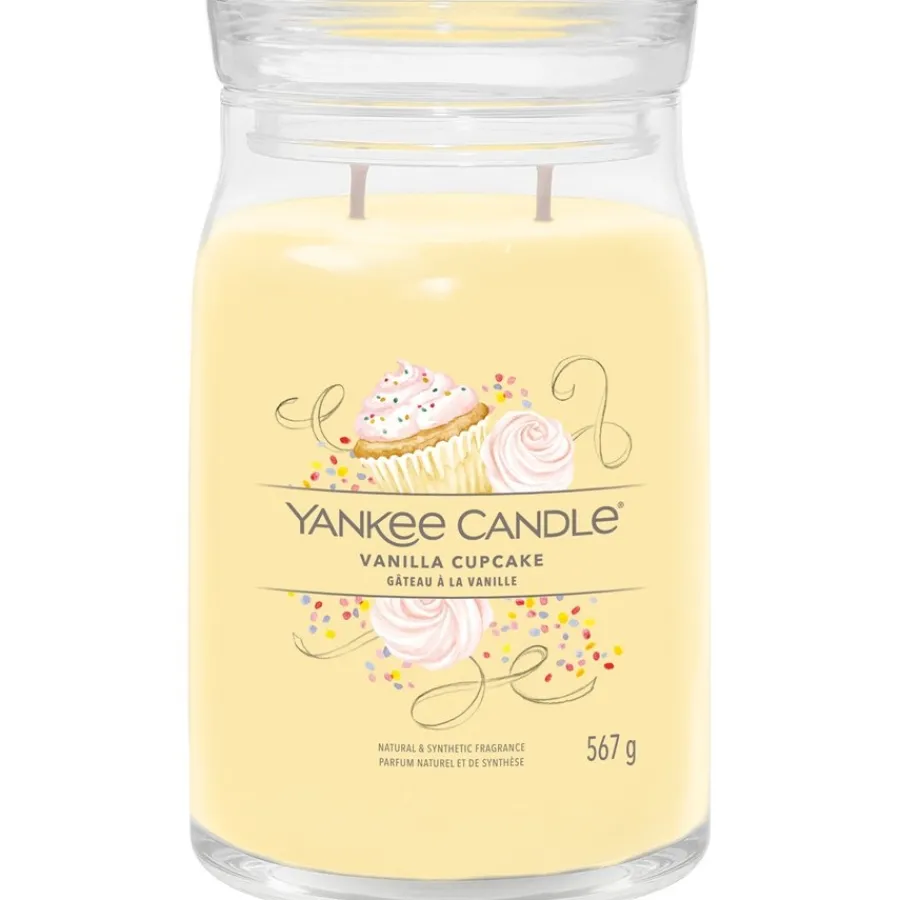 Köstlicher Geruch nach Kuchenteig und Schokolade erfüllt die Herznote. Die Basis ist von Kakao geprägt und nimmt mit Vanilleschote das prägende Thema des Dufts erneut auf. Vanilla Cupcake Duftkerzen von Yankee Candle sind in unserem Shop in zwei verschiedenen Größen erhältlich. Für eine Brenndauer von 35 bis 50 Stunden ist die Kerze mit einem Gewicht von 367 g die richtige Wahl. Möchten Sie das himmlische Aroma länger genießen, bieten sich die großen Duftkerzen mit einem Gewicht von 567 g und einer Brenndauer von 60 bis 90 Stunden an. Um das obere Ende der Brenndauer zu erreichen, sollten Sie die Kerze nicht löschen, bevor sich die oberste Wachsschicht vollständig verflüssigt hat. Darüber hinaus können Sie durch das Kürzen des Dochts eine zu große Flamme verhindern und dadurch den Wachsverbrauch verlangsamen.